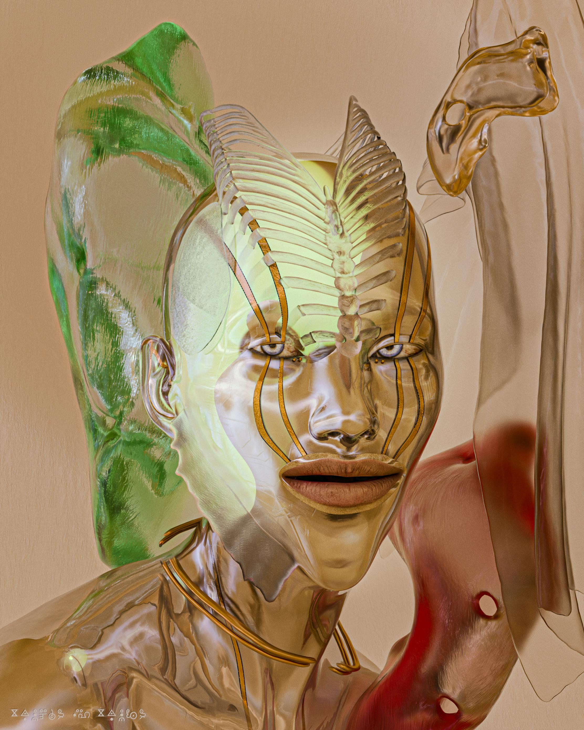 You need courage, self care and dedication to shine. In the portrait “Trucha y Trufa ”, Frenetik Void reveals the true nature of a fantasy mythical creature. The figure looks relaxed, deep and confident. The strange connection produced by the Dada-esque practice of pairing two words together hints to something totally new, an unlikely affair