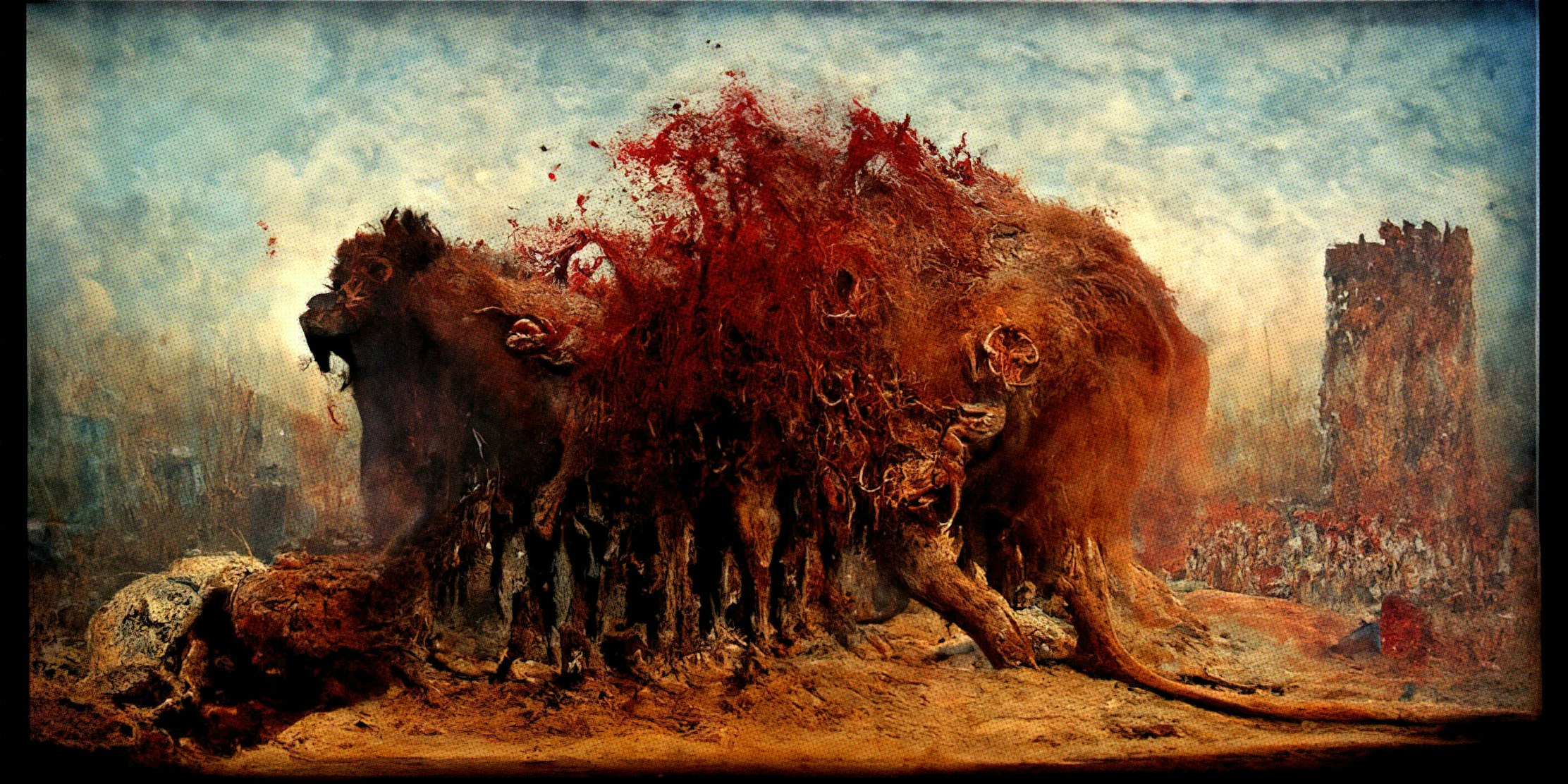 The lion is a universal symbol of Sri Lanka and its people, representing their spirit and resilience. However, this is only symbolically true for the country since, throughout its history, cruel and misguided socio-political and cultural forces have corrupted the real soul of the people. The artwork, "Murder of Leo", takes inspiration from this cruel crushing of the soul of a strong nation and its people.