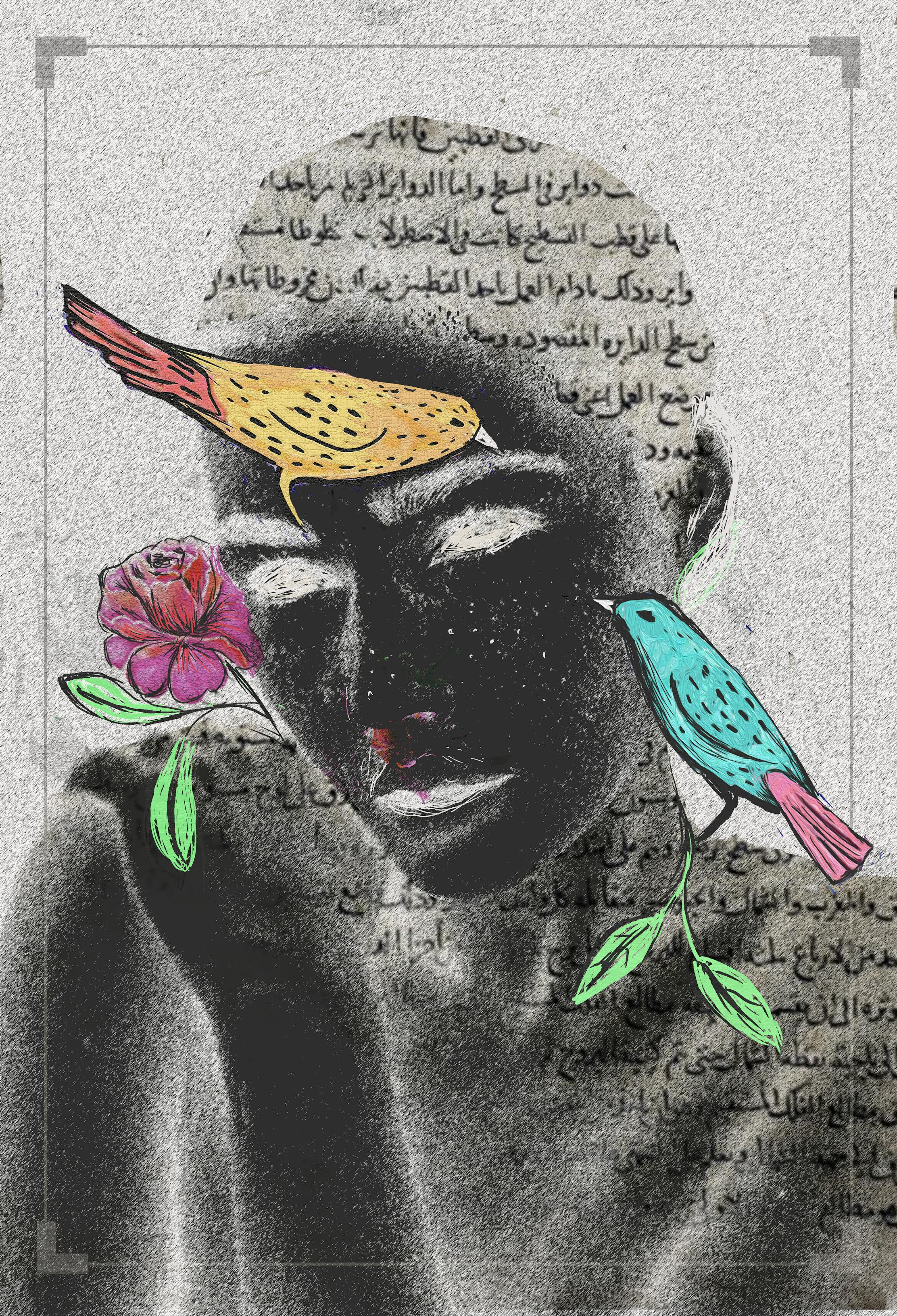 A woman whose matte image of her face and gaze stumbles on the stagnant waters