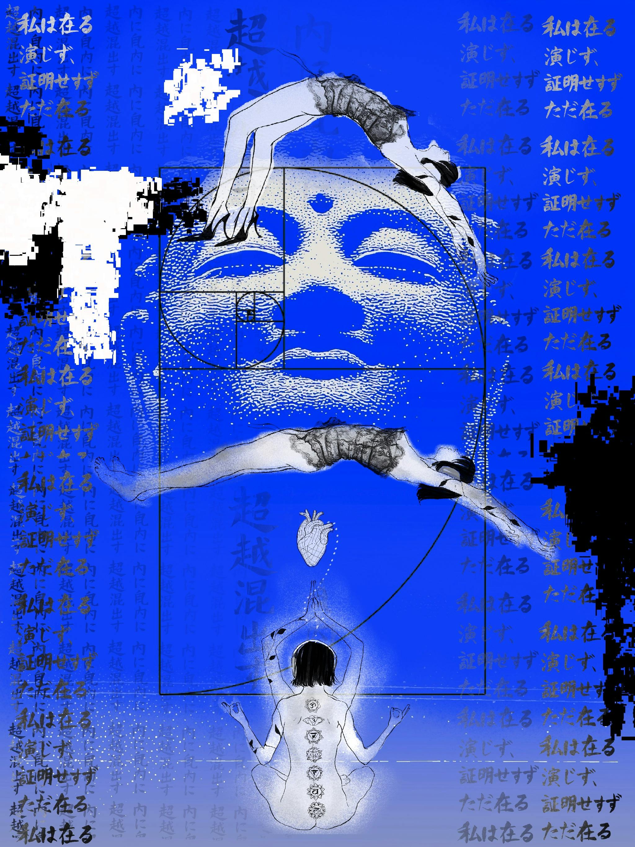 Buddha as a background is a metaphor for immovable, eternal consciousness.