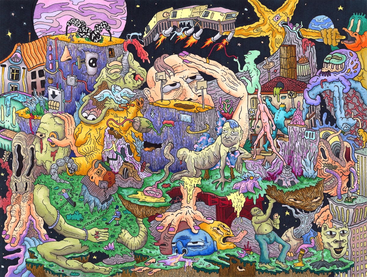 Ink and markers on paper, scanned in high resolution