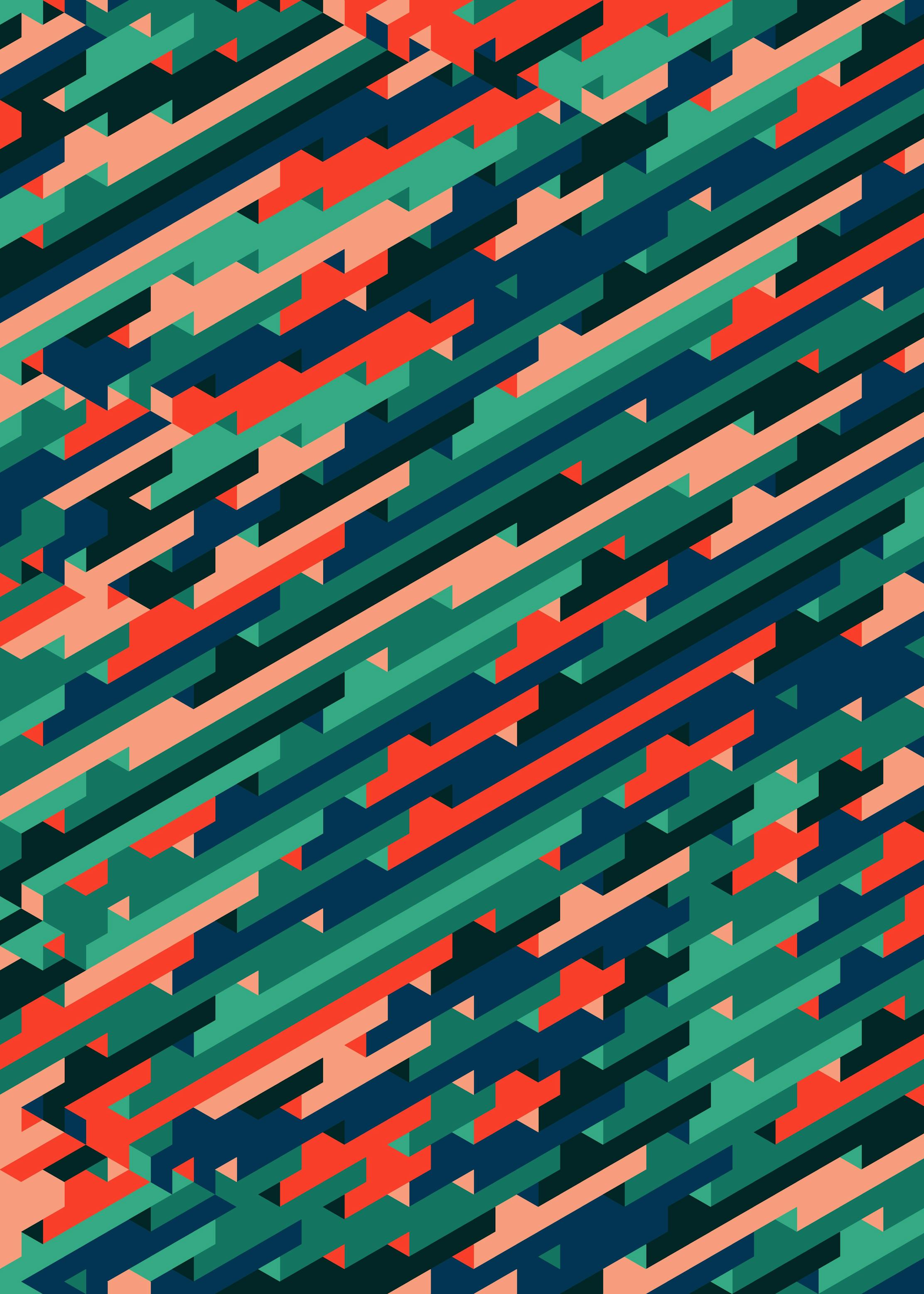 Simple shapes create ambiguous perspectives and repetitious patterns are short-lived.
