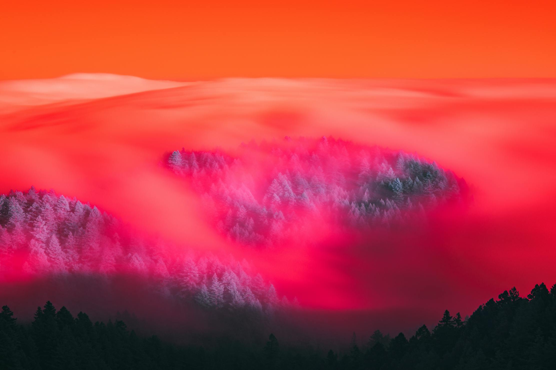 In this second installment of the ‘Spectrum Series’ we explore the domain of HyperColor. Within the composition is an emergent cove of Oak Woodlands that are blanketed by the streaking fog, as the principles of time and space are blurred beneath this golden atmosphere. We observe the heartbeat of nature’s movement, rich with saturation, the vivid tones a celebration of a photographic technique and palette uniquely characteristic to this Invisible Spectrum of Light.
