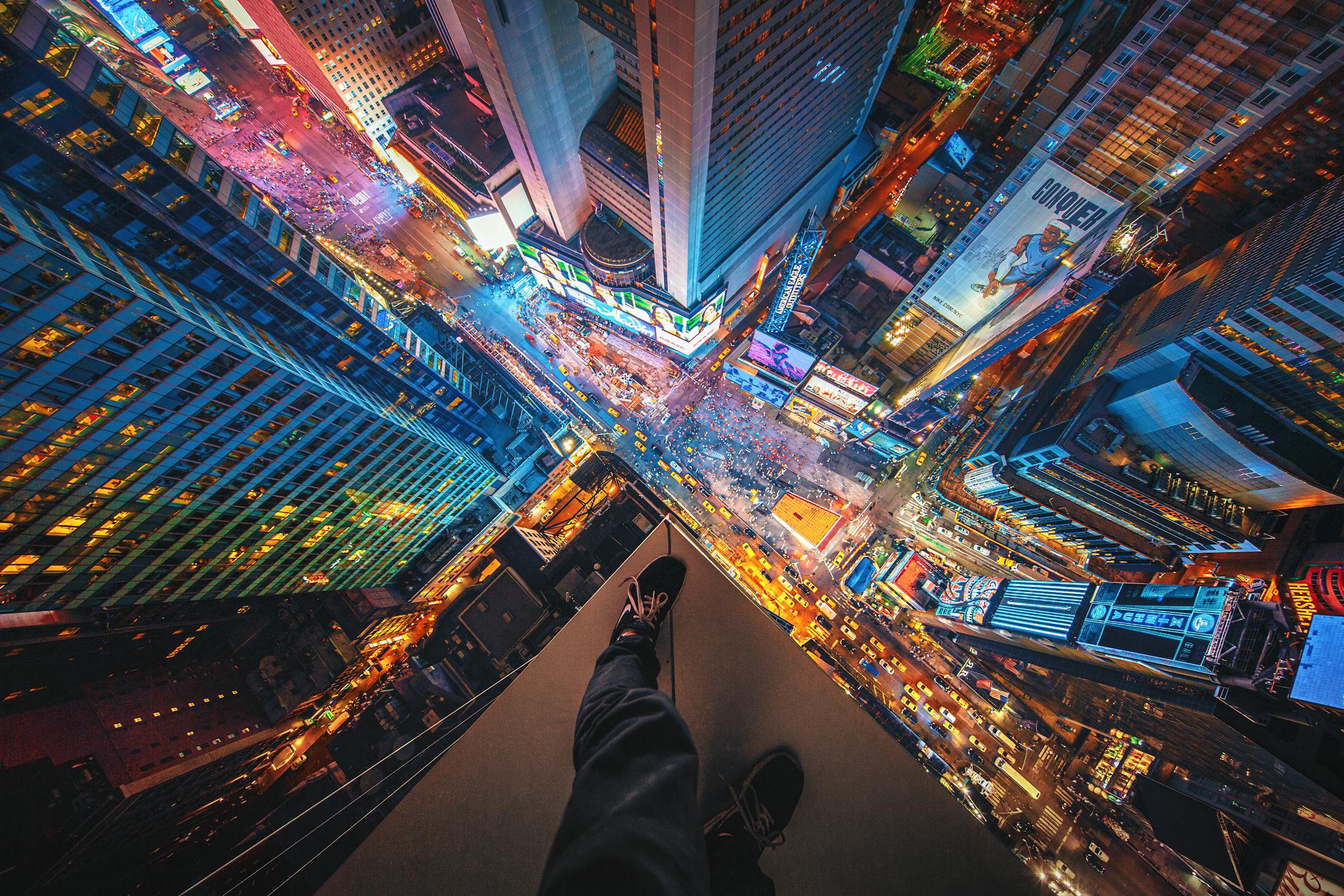 A few minutes later we were cautiously exploring the view that looked down to the bustling streets of Time Square. I moved slowly to the corner of the building and held my camera out over the edge, the adrenaline was vividly real. After taking the photo I sat down, I dangled my legs off and took a short moment to myself to appreciate where I was.