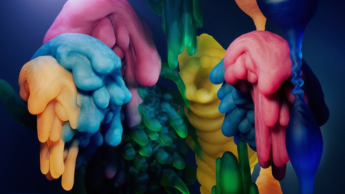 Handsculpted shapes combined with softbody and cloth simulations make up this artwork. This is the first piece from my explorations into this organic, soft and vibrant universe.
