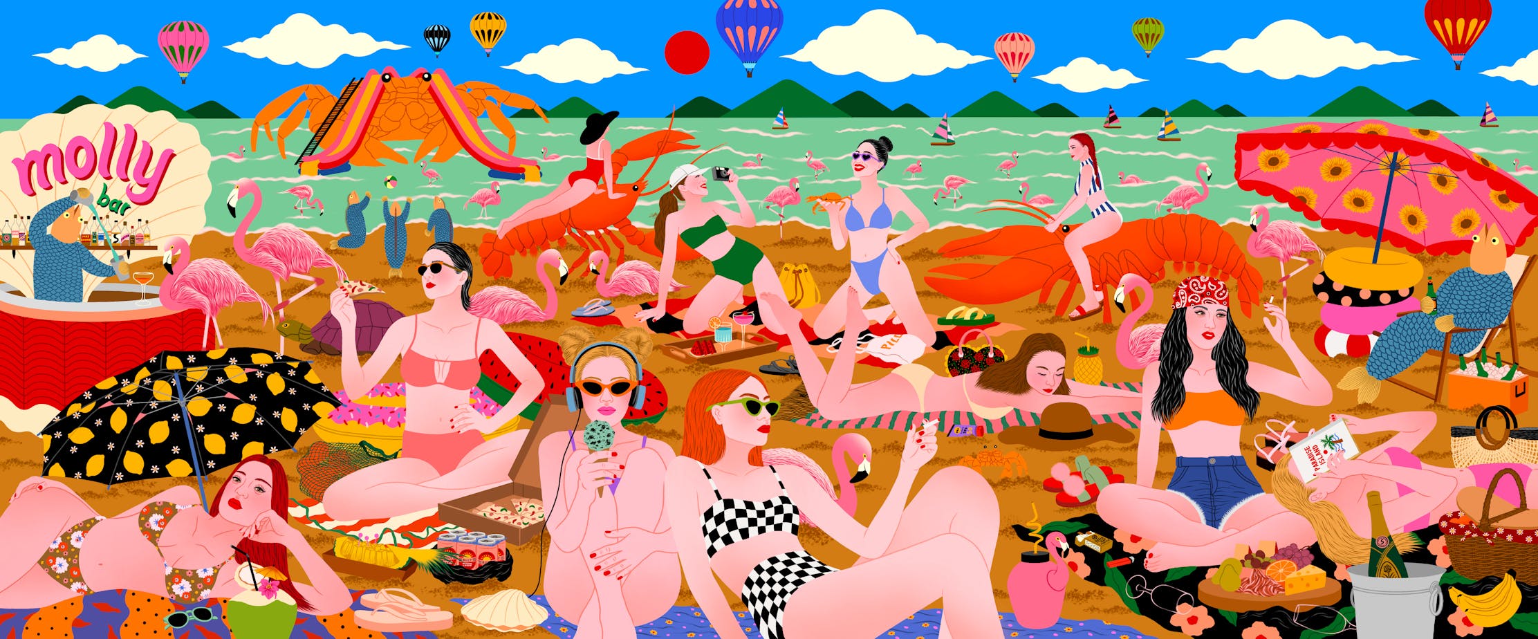 Here is the place of joy. It's the best place to hang out, sunbath on the beach, enjoy the sea or anything you like. We have lots of outdoor activities services such as sailing boat, balloon, giant crab slider. And also many nice cocktail bars and cafes along the beach. Moreover, animals here are very friendly as well. Have you ridded giant lobsters before? Do you wanna try it?