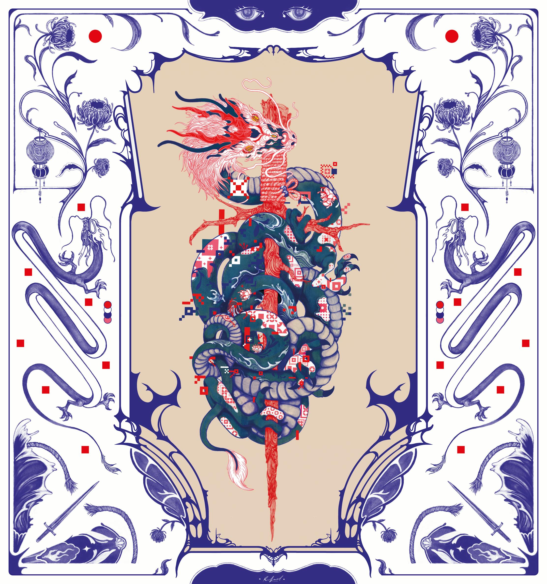 The frame around the dragon is reminiscent of the azulejo, these Portuguese tiles always bring me back to my childhood and are a staple of my culture.