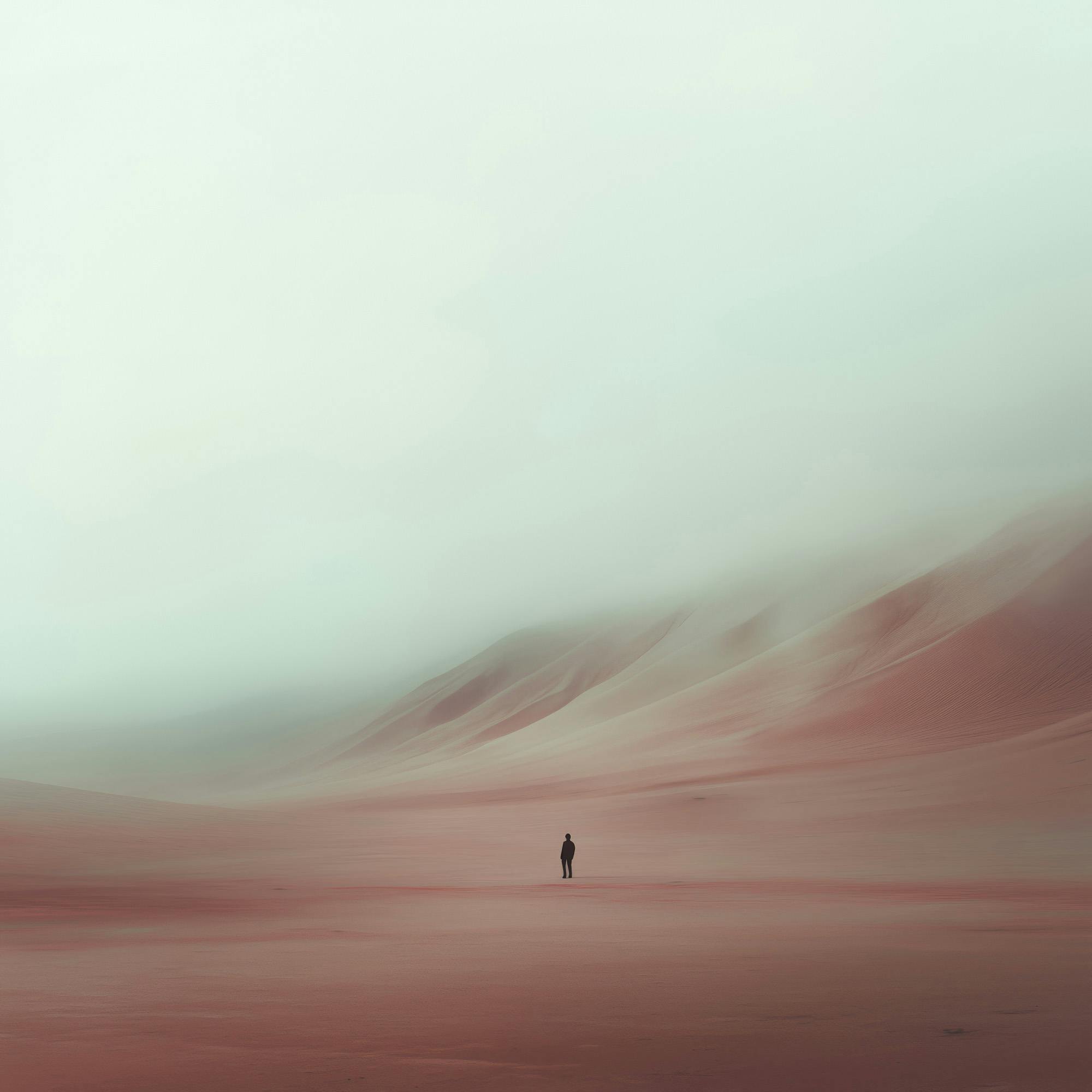 A digital abstract landscape born from an experiment exploring the intersection of human preferences and artificial intelligence. By independently analyzing the most popular elements—landscape subject, abstract style, warm tones, mysterious mood, and minimalist composition—the artwork reveals a surprising alignment between human choices and AI conclusions.