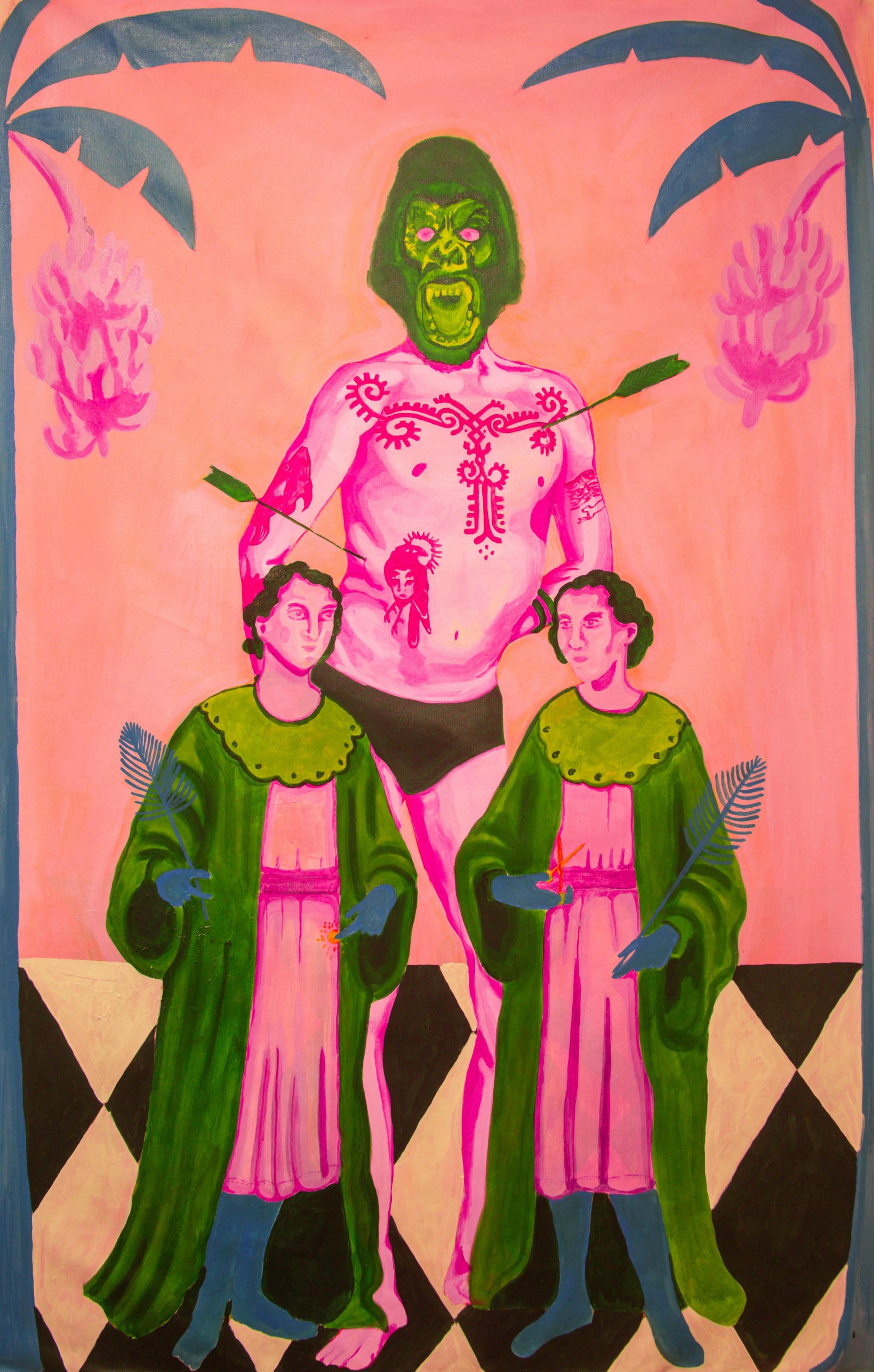 At the center of my striking acrylic painting, you'll find a figure adorned with intricate tribal tattoos, symbolizing the journey of self-discovery and resilience. Two arrows cross behind them, representing direction and purpose in the face of life’s challenges. In the foreground, the iconic figures of Cosme and Damião evoke a sense of protection and faith. Their presence serves as a reminder of the importance of believing in something greater, even when times are tough. Surrounding this serene scene are two lush banana trees, their vibrant leaves swaying gently, symbolizing growth and renewal in the midst of adversity. This artwork encapsulates my belief that painting oneself is not just a form of expression, but a transformative process that allows us to see problems from a new perspective. By externalizing inner struggles through art, we can confront and reframe our challenges, finding beauty and strength in our stories. Ultimately, "Faith and Reflection" invites viewers to embrace their individuality while recognizing the power of faith and community in overcoming life’s obstacles. Through my masterful use of color and form, I hope to remind everyone that art can be a powerful tool for reflection and healing. 1.50 by 1.10 meters Acrilyc on Canvas 2024 José Narciso Special Note: The first buyer will receive the canvas at no additional cost.