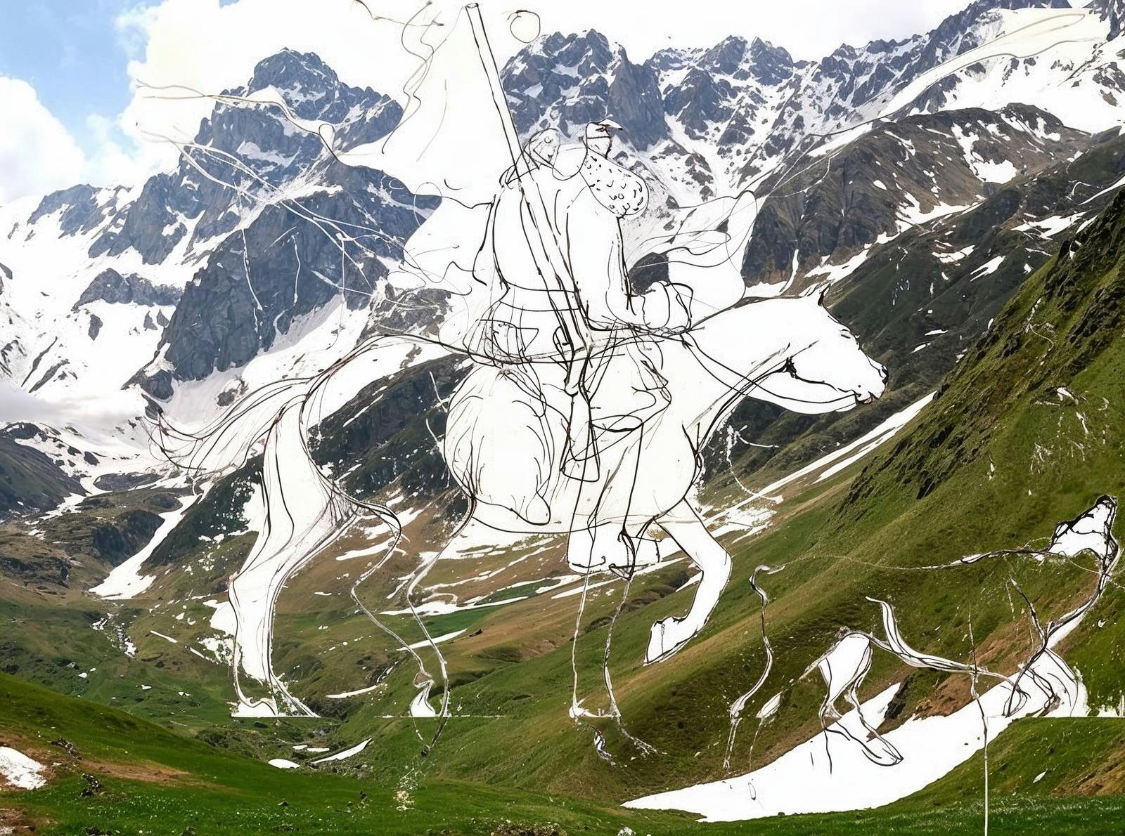 Drawing on photo of the Chaukhi Massiv in the Caucasus of Georgia