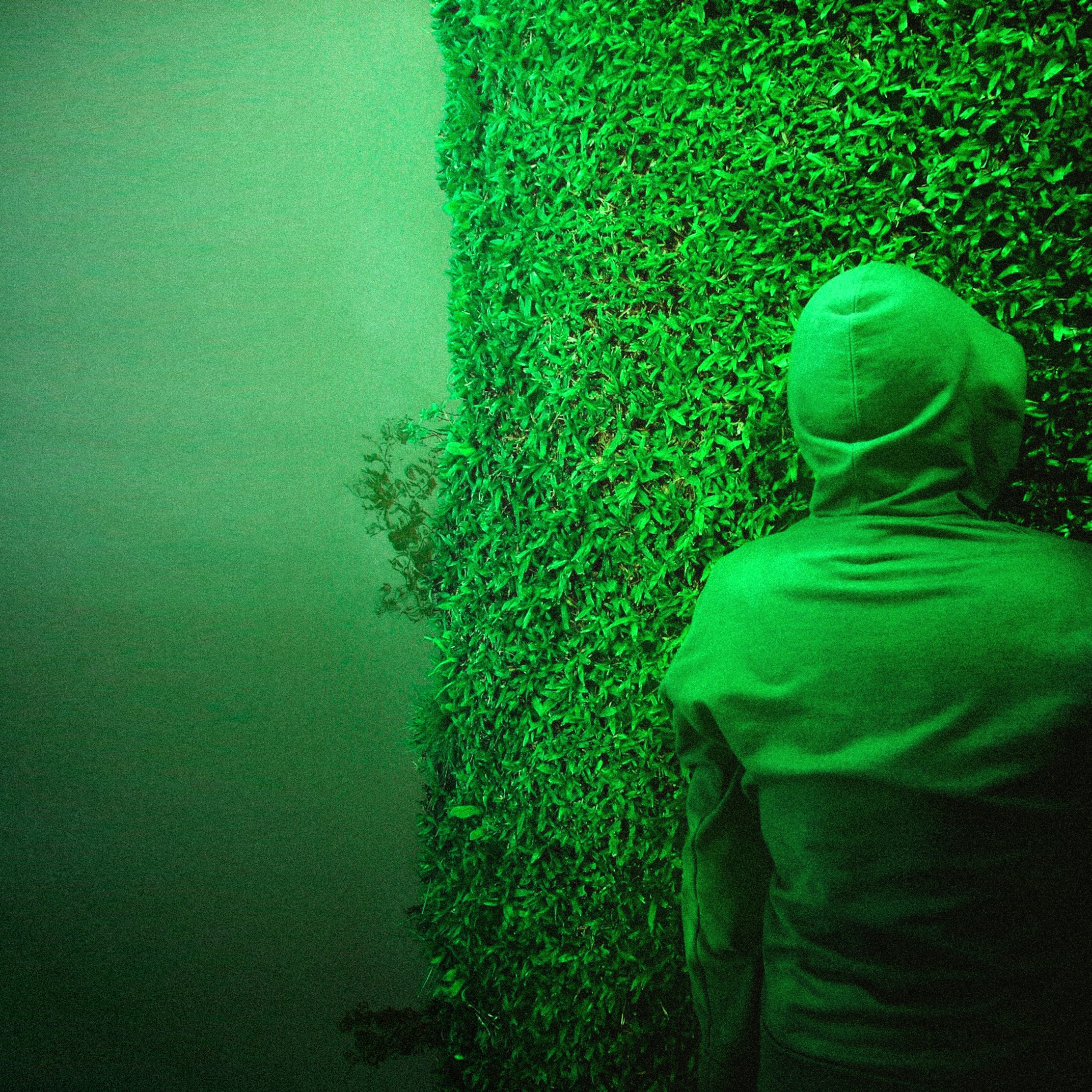 At times, the artist photographs himself amidst natural forms, in a state of deep contemplation, highlighting the profound disconnection between city life and nature.