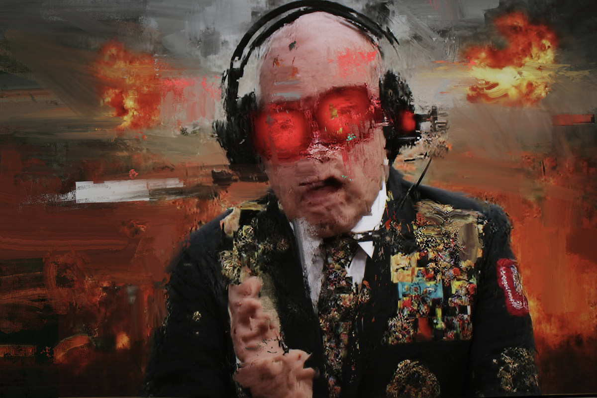 Combining analogue and digital painting processes. The Pentland Experiment is an on-going project which depicts an alternative reality on the outskirts of Edinburgh. Using electronic techniques, which converge the digital and physical, Harman creates abstracted motifs within sparse landscapes. Figures and structures are deliberately burred from the viewer in these highly staged algorithmic compositions. Within the corruption of the digital, there is a break up of information, which leaves the viewer flickering between abstraction and figuration