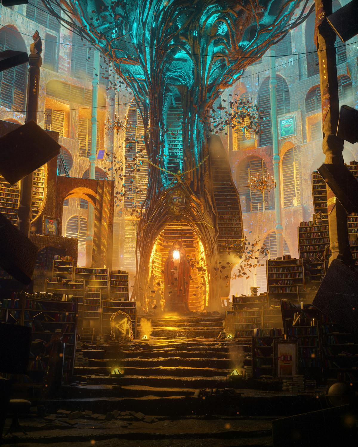"Right at the centre of everything a giant endless maze of knowledge surrounded the Immortal Tree. Source of unknown power, believed to be the very heart of the cosmos. Protector of the past, present and future."