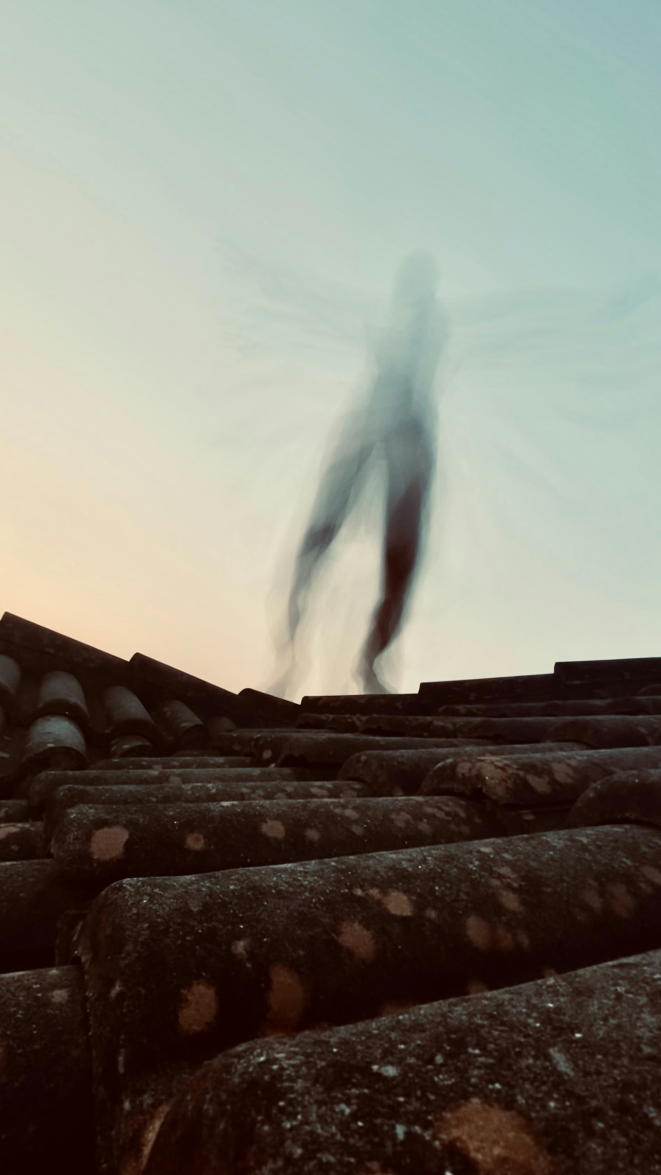 "Upload" captures the fluidity of existence and the transmutation of form that speaks to the essence of the digital age. The figure of the artist dissolves into a cascade of movement, an ethereal presence ascending from the earthy, time-worn tiles of a roof towards the expanse of the open sky, embodying the concept of uploading consciousness, a poignant metaphor for the transference of human identity and spirit into the boundless realm of Ethereum. As the figure dematerializes, it resonates with the process of transformation inherent in the minting of an NFT, the artist existing simultaneously in the physical and digital worlds, yet bound to neither.