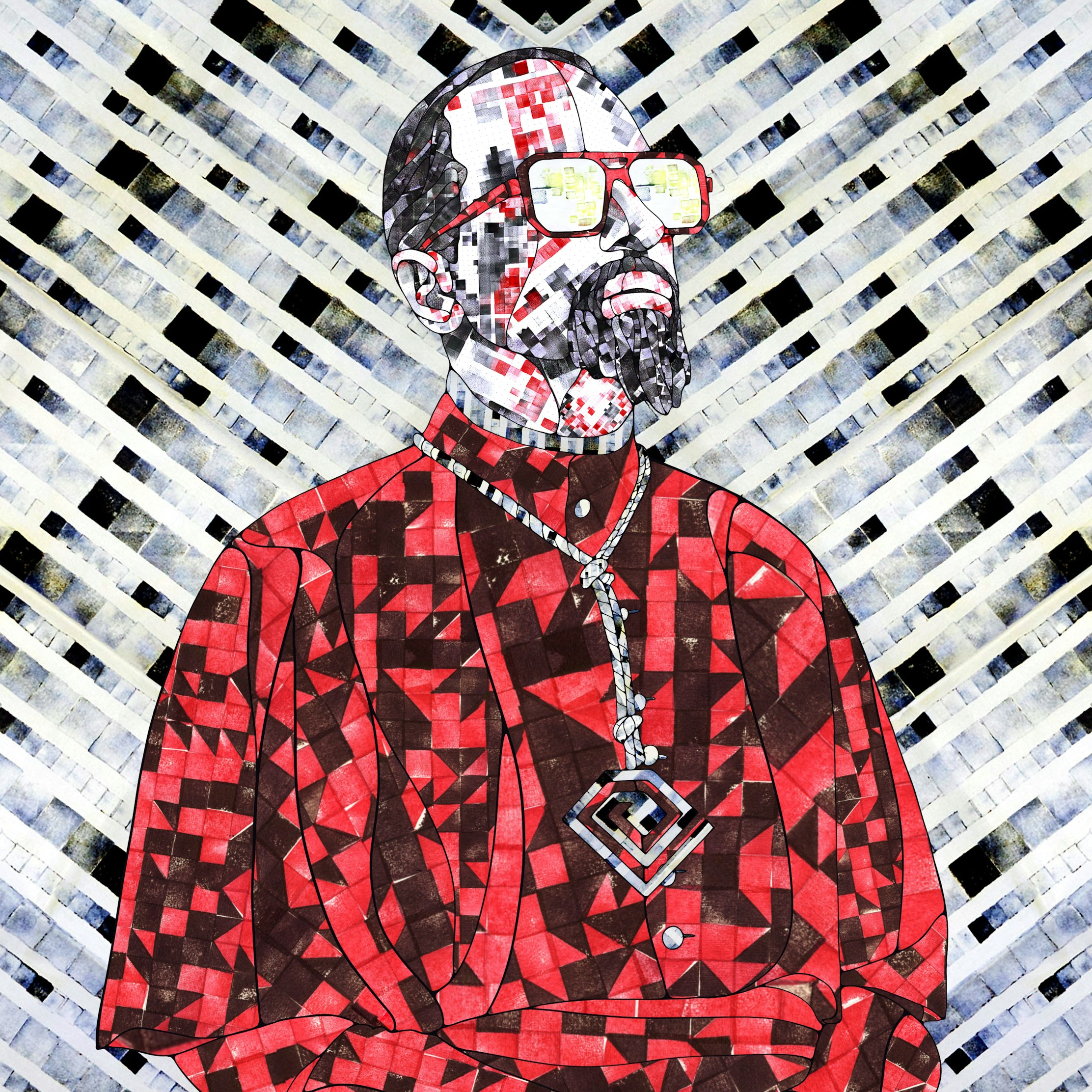 "Repetition is a big part of my philosophy in art and life, so I am always excited to collaborate with an artist like Mattia, who I believe shares the same mindset. Getting lost inside those repeating patterns, like a labyrinth of designs and an invasion of geometric shapes, I aimed to create a unique yet familiar result."