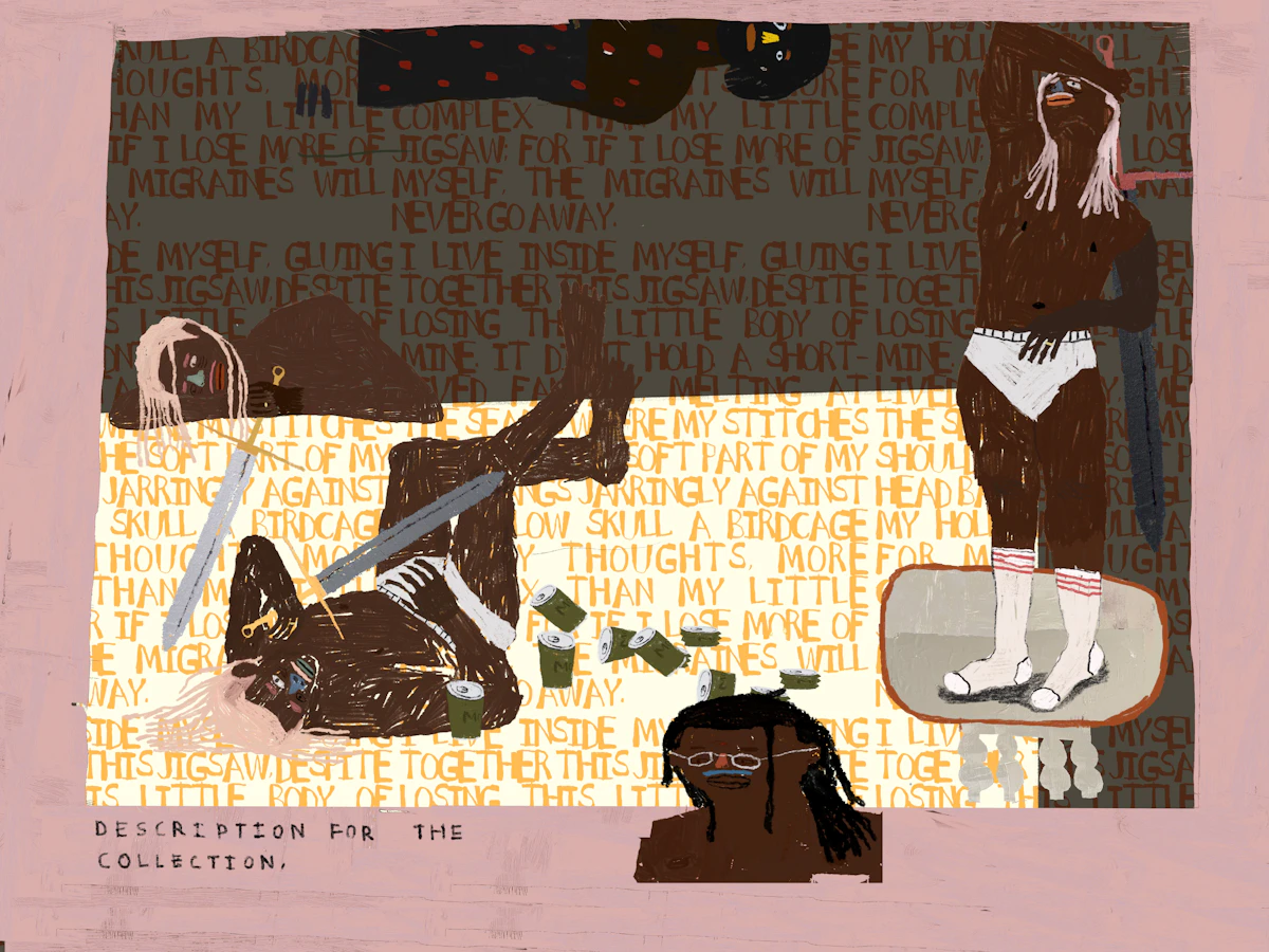 "I live inside myself, gluing together this jigsaw, despite losing this little body of mine. It didn’t hold. A short-lived fantasy, melting at the seams where my stitches should be. The soft part of my head bangs jarringly against my hollow skull. A birdcage for my thoughts, more complex than my little jigsaw; for if I lose more of myself, the migraines will never go away."