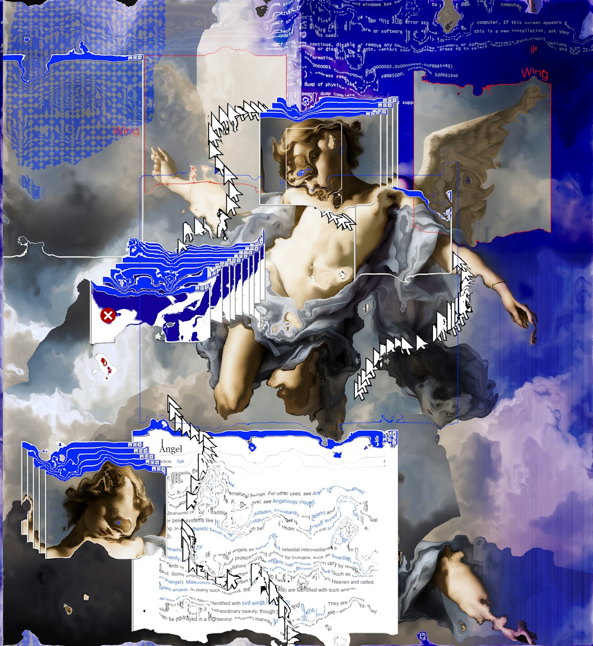 The flickering blue screen of death adds an element of uncertainty and reminds us of the fragility of digital existence. In the background of the work, an avant-garde calm sound generated in SUNO plays, enhancing the atmosphere of contemplation about the future of art.