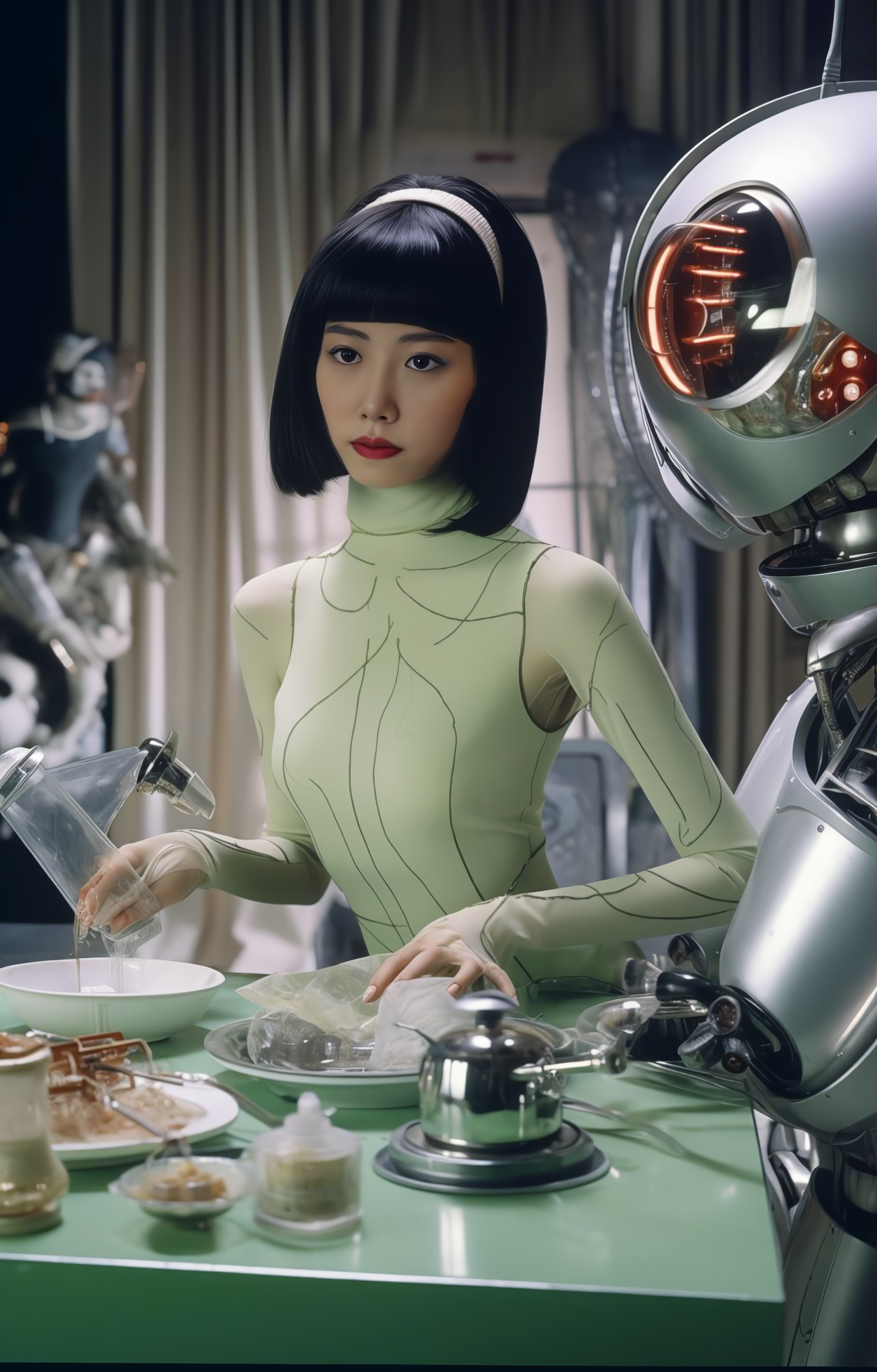 In my kitchen, the rhythm of the future pulses, spices and algorithms dancing in digital harmony. As I await the return of my beloved, tradition lingers subtly, a quiet undertone to the melody of modernity.