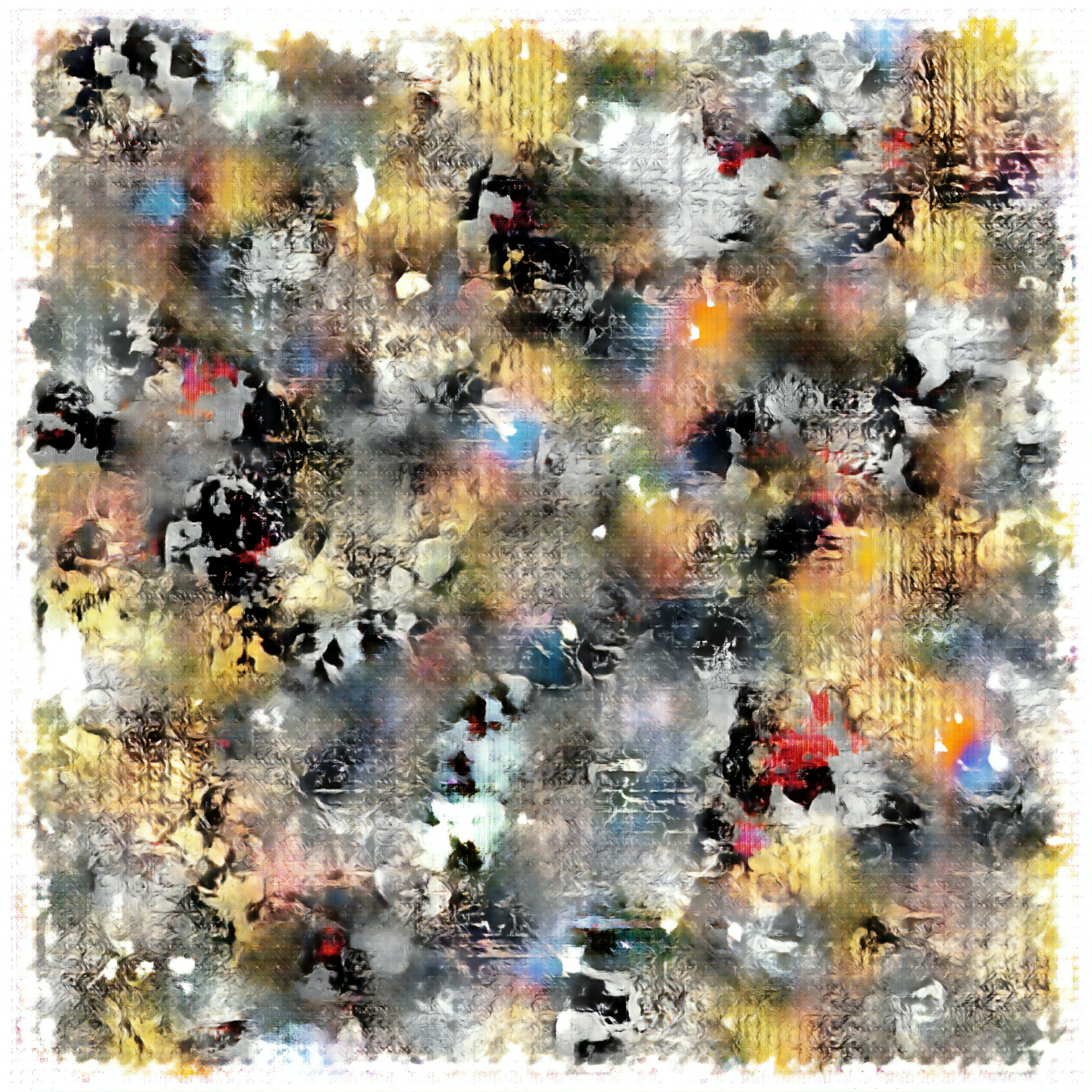 A study in the texture and color of money. An AI generated ingot of molten coins made from 22,000 images of coins and crypto coin logo representations. Generated using Art-DCGAN by Robbie Barrat. High resolution 6,784 x 6784 pixels