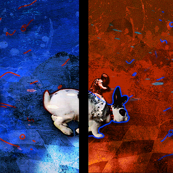 White rabbit teleporting between two works. Maybe Neo, maybe Alice. We are constantly being dragged here and there and here and there.