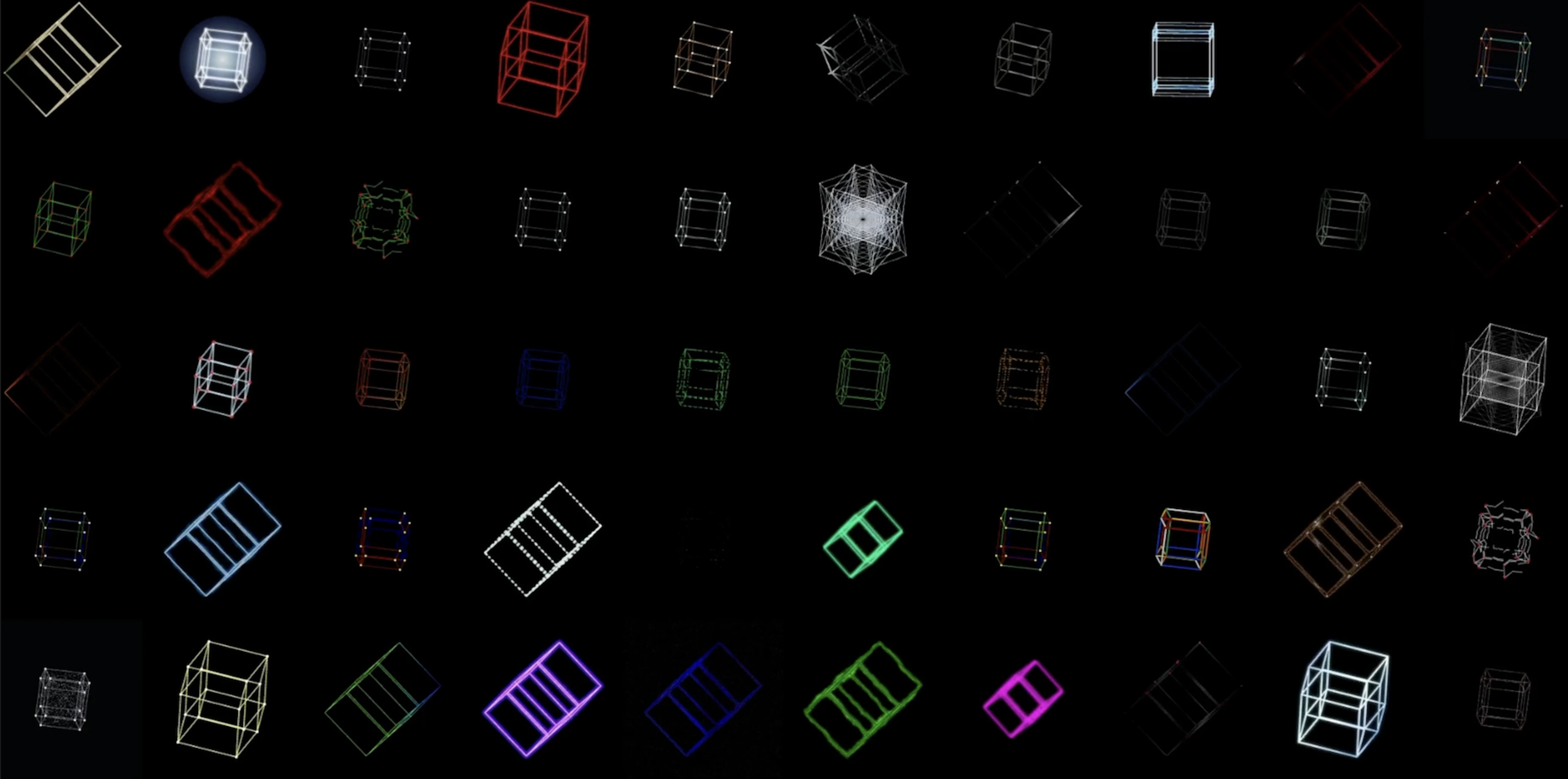 TESSERACTS are 50 meticulously hand-crafted SVG artworks – each unique in style, character, and energy. They are always on, ever flowing, living artworks that display entropy and order in perfect balance.