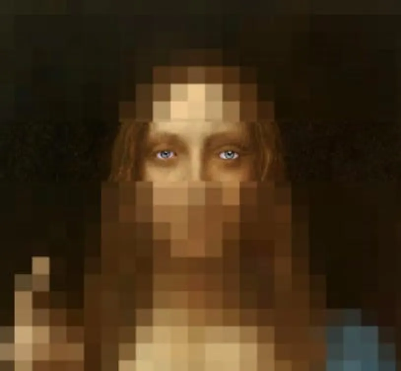 In a certain way, Max Osiris’ artwork echoes the veil of women, dominator culture and censorship. More broadly, it can also be interpreted as a critique of our current society, and especially the economic and financial system on which it is built. In this work, Jesus’ eyes have been replaced by those of Vitalik Buterin who, as the creator of Ethereum, is displayed as a savior of our economy – Salvator Oeconomiae.