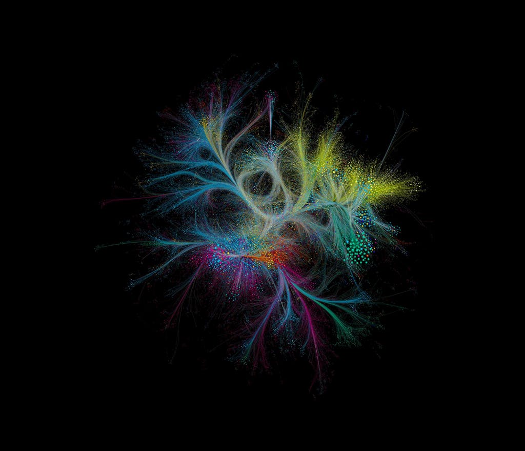 BarabásiLab has about 30 members, from postdocs to students and designers. Each work is the results of a team, where the data comes from the research of the postdocs and the research, and so does the narrative, and it is them, together with the designers, who work on the visual language as well. It is important to understand that the role of the designer in the lab is not to create “pretty” images, but to help us in our journey understanding complexity. So they are data designers, embedded within the research teams. And decisions are driven by the clarity of the story telling, and of course esthetics as well. We even research some aspects—one PhD student’s research focuses only on color choices in DataArt.
