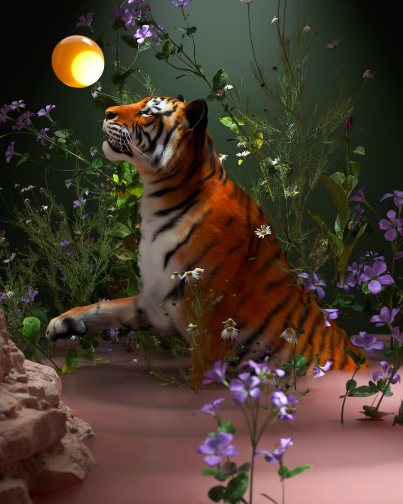 Like many of us, I have always been drawn to the elegance and presence of the Tiger. For this project I wanted to make it part of my artwork. The collection shows the Tiger in situations of intimacy, calm and curiosity. New spaces to be explored. By Santi Zoraidez.