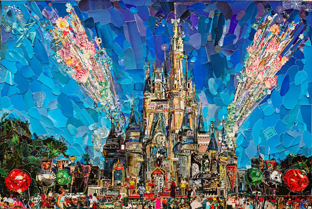 For a couple of years, whenever I was not traveling, I made a series of famous images of places reproduced with fragments of postcards from my collection, making “somewhere” from thousands of little “nowheres”, impressions quite similar to the atomized, volatile and fleeting ones that we sense in the actual experience of a novel environment. It was like building an image of a place as roughly as I could remember it, filling the gaps with whatever is available. 100% of proceeds for Benefit of Escola Vidigal, a not-for-profit art and technology school that organizes free educational programs for the children of the Vidigal Favela in Rio de Janeiro