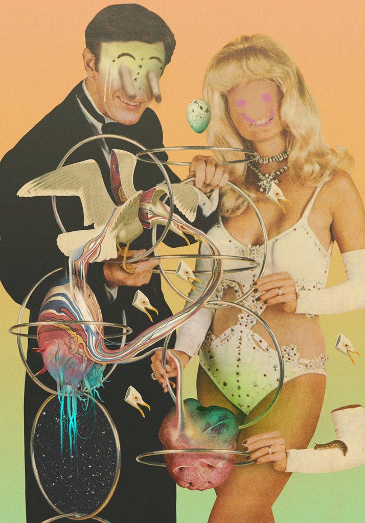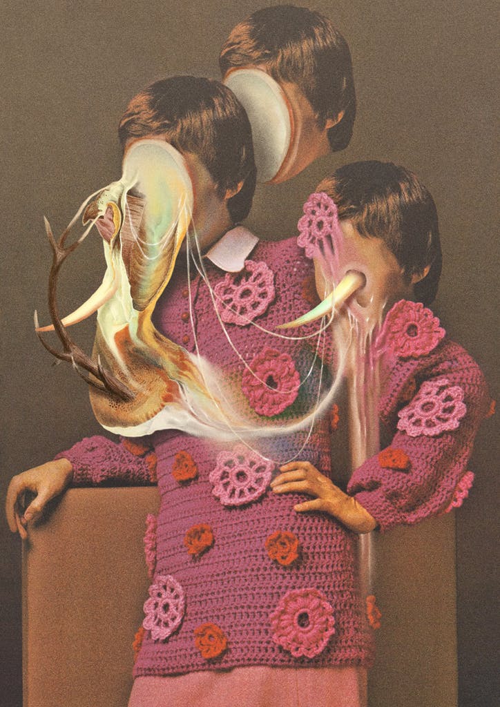 NSFW but safe for NFT! German artist Pierre Schmidt, born in 1987 and also known as “drømsjel”, creates mind-bending imagery that combines digital illustration and collage techniques. He takes old-fashioned 20th century style (sometimes pornographic) photographs and puts his own twist on them by manipulating each photo with his own vision of surrealism. Using photo manipulation, illustration, and collage, Pierre has found the perfect balance within each medium he utilises, creating a diverse set of terrifyingly beautiful pieces of art.