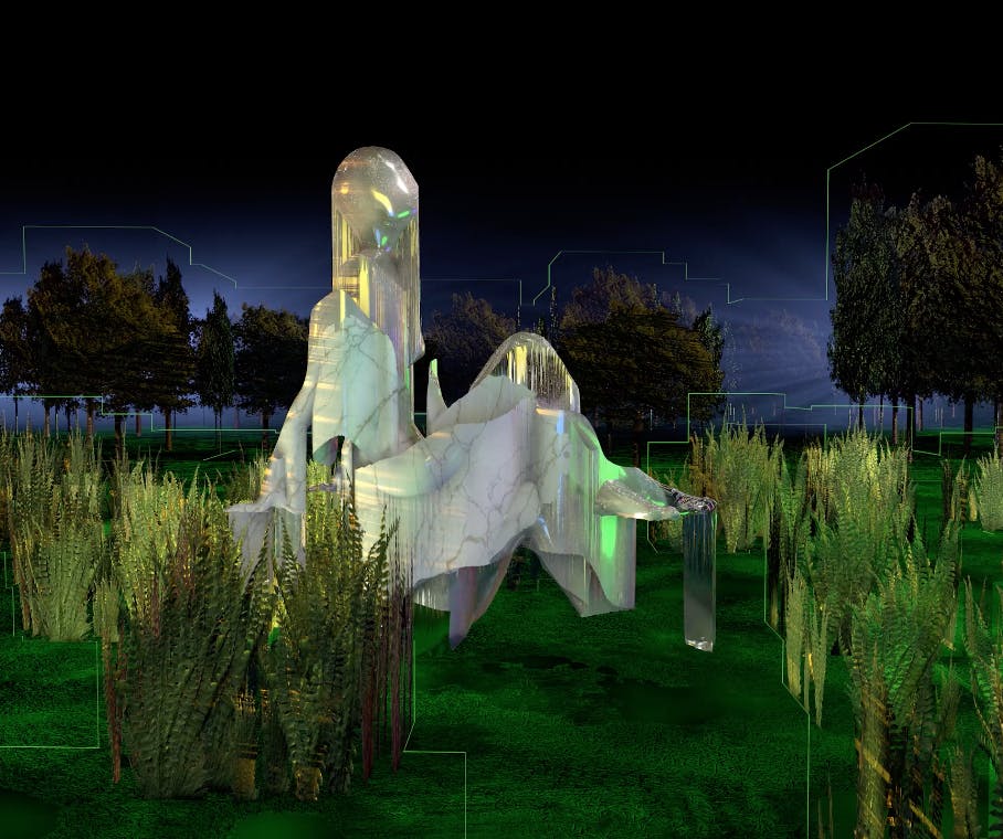 “Sea Change” features the work of new media and digital artists Claudia Hart, Auriea Harvey, Krista Kim, Marjan Moghaddam, Itzel Yard (Ix Shells), Luna Ikuta, Anne Vieux, Blake Kathryn, Holly Herndon with Mat Dryhurst, Sabrina Ratté, Nicole Ruggiero, and Sam Clover (Planttdaddii).