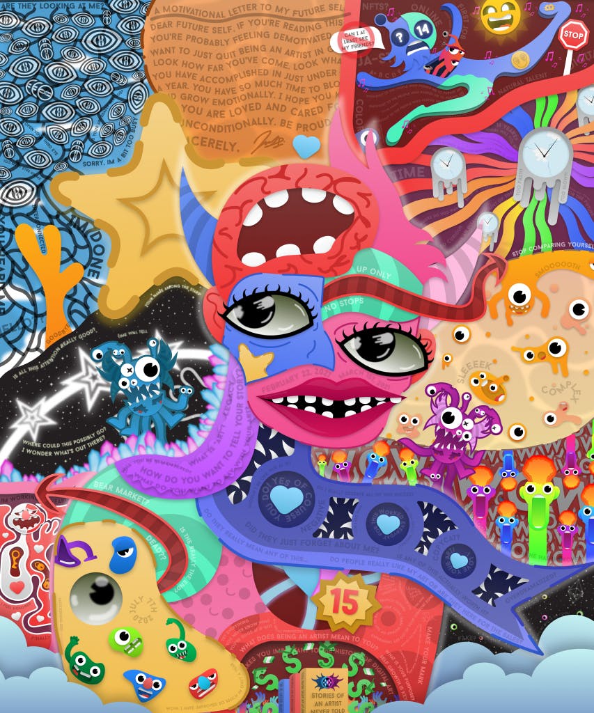 I would say educate yourself before getting started in the NFT space. Get a ledger (hardware wallet), and protect yourself as well. As far as I’m aware, you have to make a new Metamask wallet once you get a ledger, you can’t use your old one. So it’s good to get a ledger before you get started. Be aware that these are new technologies that are not completely secure. Also, think about the type of work you want out there in the world, and don’t under value yourself. Don’t inflate your work either. Try to stay true to what you think you deserve. Think about the hours and time you put in, including money that you are spending on software, hardware, and equipment. These all add to the value of your work. Another important tip is talk to people and stay active, but don’t post or tweet just to do it. Try to stay true to yourself. Message people too. Even if you think there’s a good chance they might not respond, there’s still a chance they might! And lastly, stay strong and know when to take breaks. Creating all the time is not healthy, no matter what anyone says. It is good to step back and get off the computer. No one likes a burn out and it doesn’t help the longevity of your career either. It’s important to pace yourself and continue good work, which will increase your work’s value over time. This is important both for the longevity of your career and is also important to collectors who are looking to invest in you.