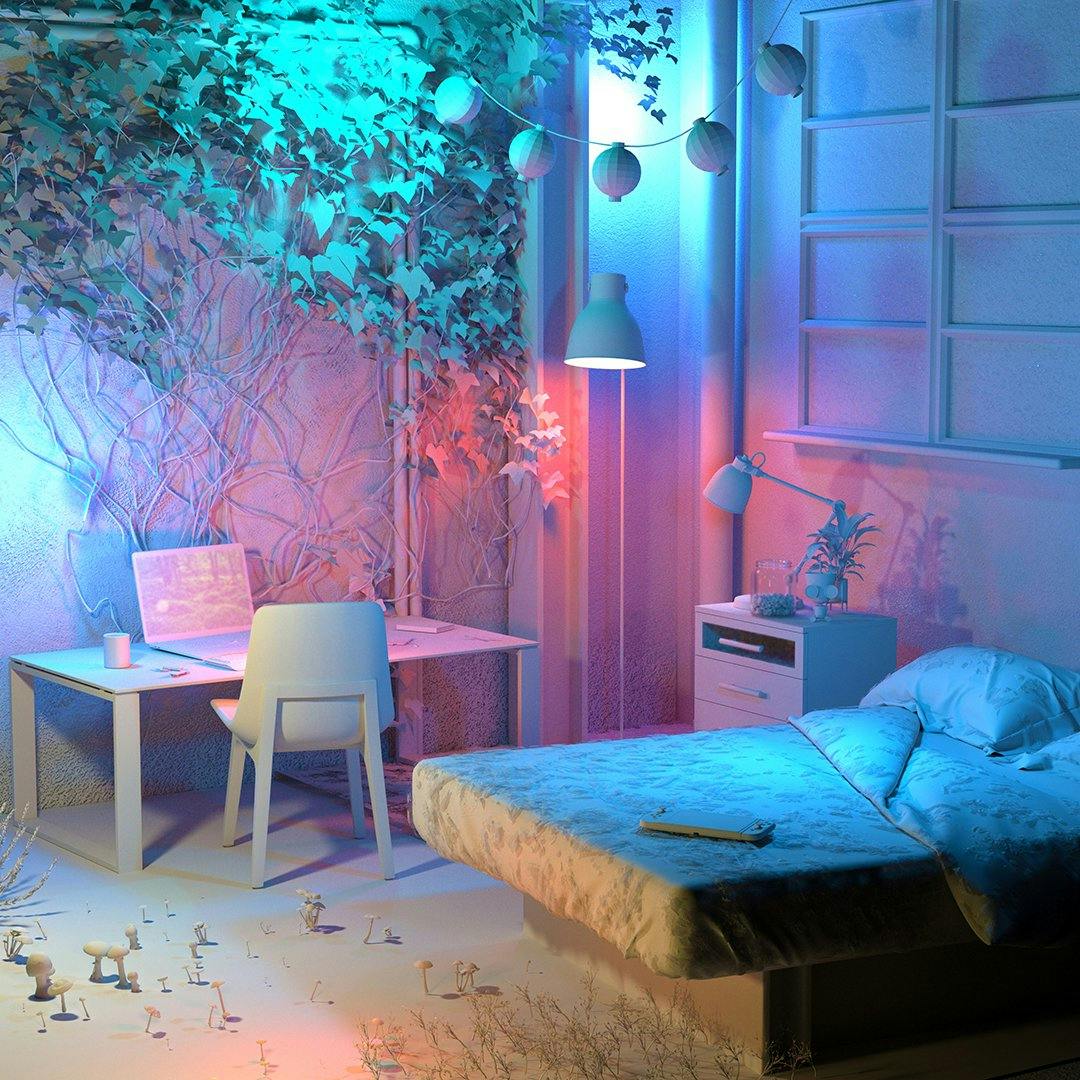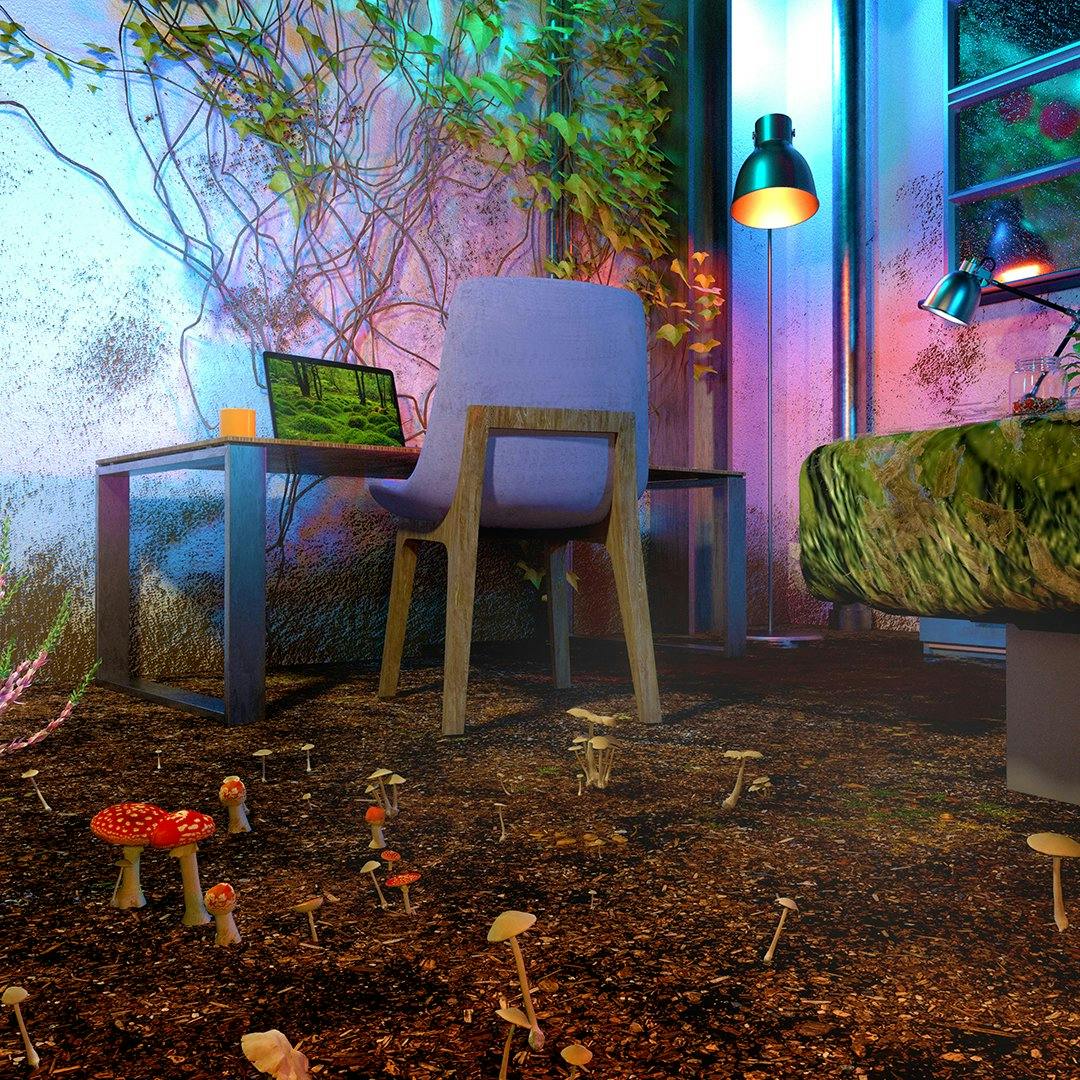 “Escapism was an important mechanism used to cope in the tight quarters of NYC before masks and hand sanitizer were accessible,” the New York-based 3D artist said. “Going outside felt as dangerous as driving blindfolded.”