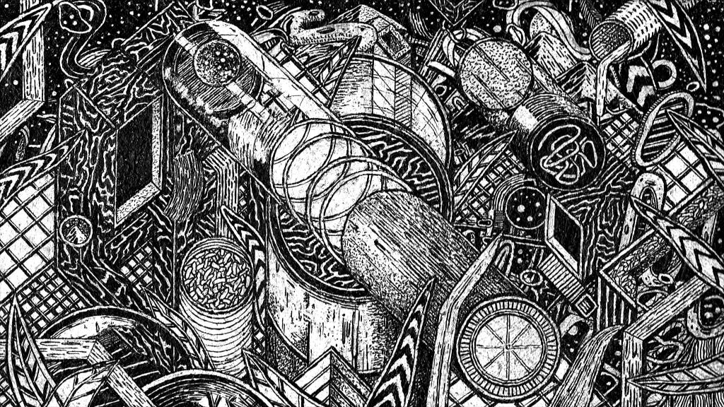Upon the simultaneous drop of the first note and opening frame of “Night Vision,” an experimental animation by Jake Fried, we are fully immersed within a black and white cinematic universe rich in texture and guided by a labyrinth of intricate geometric forms.