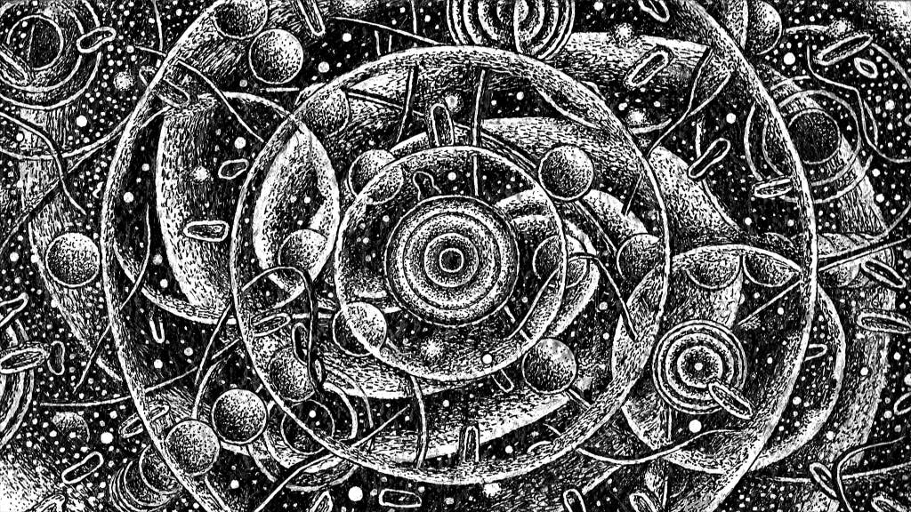In conversation with SuperRare, Fried spoke to the cyclical nature of the work as a “mystery that unfolds and unlocks over time,” exploring every angle of the self from inner and outer spaces, and from the anatomical to the galactical. Along the edges of the frame, in our peripheral vision atmospheric layers expand and contract gradually moving toward the edges, filling the entire visual plane until the cycle begins again. The fluidity of motion and the rapid pace at which the animation plays, veils the complexity, rigor and time behind the process.