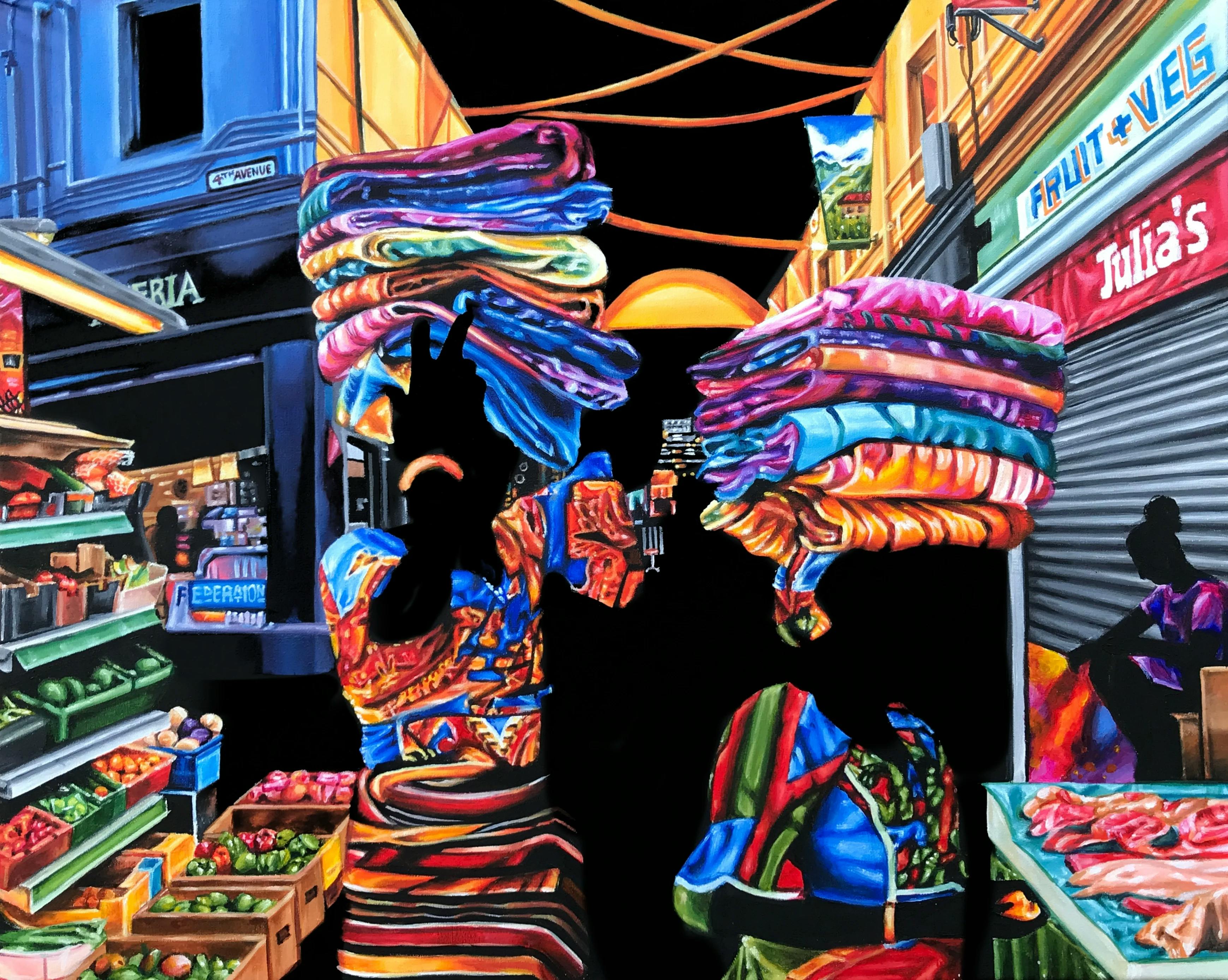 Born in London, UK, Sharon Adebisi is a contemporary artist who uses paintings to capture her thoughts and experiences as she attempts to navigate adulthood. Her most recent works explore the identity issues she faces as a British-African hybrid, and the conflict between embracing her African roots yet assimilating to her British culture. Sharon’s work has been exhibited/auctioned with various organisations across the world, including Zari Gallery, Woolwich Works, Sky Arts and Sotheby’s.