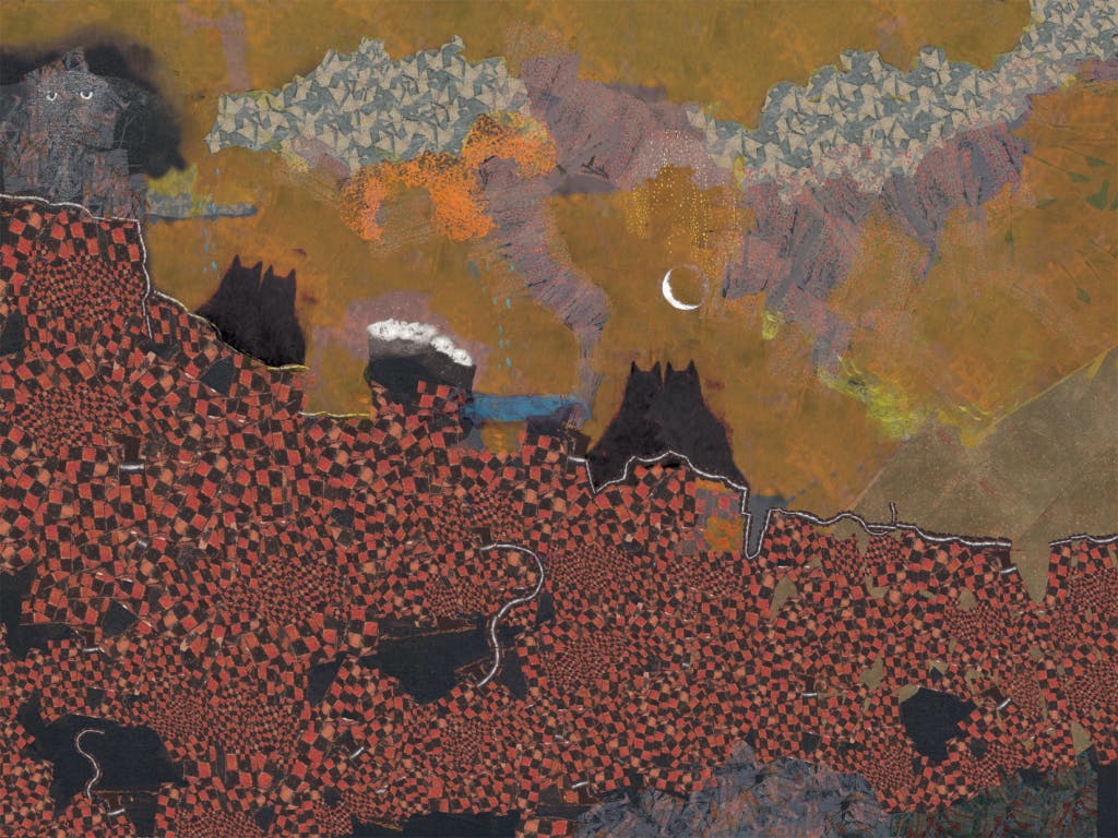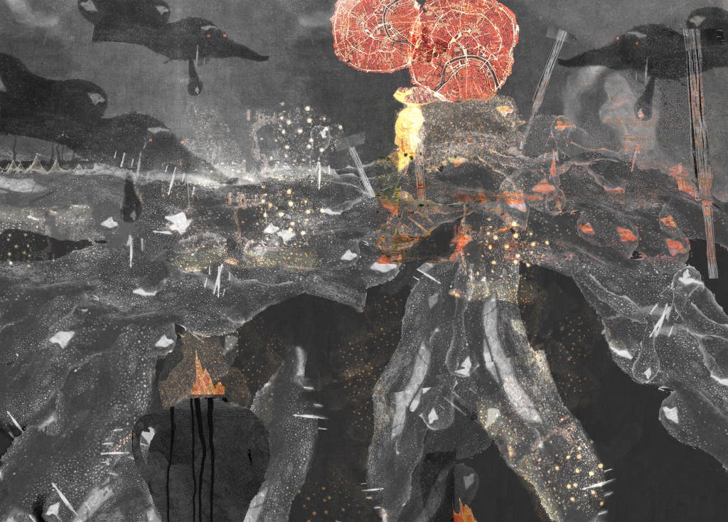 When I think about my creative process, I realize that it in a way mirrors the way our brains process things like memory and dreams. Our experience of the world is so fragmented. Our awareness sees hundreds of fragmented images, hears hundreds of fragmented sounds every day. It then takes all these fragments and fills in the blanks, so that it appears to be fluid and make sense to us. In the same way, I begin with fragments of images. Most often I take bits of images I find on the internet, but I’ll also use pieces of photographs, textures from paintings, or drawings I made. Whatever it is, I know it when I see it because I can feel that it will lead me into the world I am looking for. I’ll then take the fragment of the image that caught my eye and with Photoshop I’ll duplicate, warp, skew, and arrange all the collected fragments, often hundreds of times in a piece. I then spend hours blending the fragments together into one cohesive vision, just as the brain blends all the fragments of information it receives.