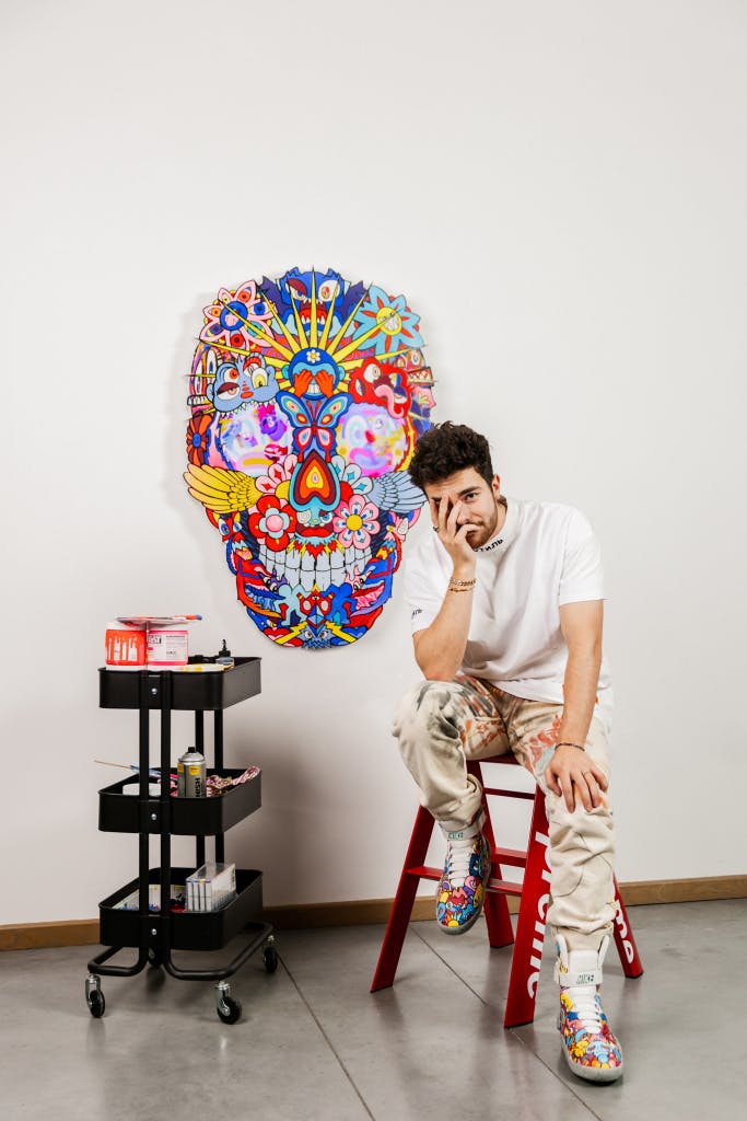 Having stayed true to the physical format, Vexx is finding new ways to bridge the physical and digital works in his second 1/1 NFT, “MOON.” The NFT will feature original music from Belgium producer Chuki Beats. Like in his previous drop, the auction winner will receive a physical sculpture in addition to the digital artwork. A product of a months-long, labor-intensive process, the final digital statue is a colorful skull-like face, hand-painted with acrylics and sculptured with a laser cutting technique. In the place of the eyes are two paper-thin, 17-inch screens. Vexx has written his own smart contract that uses WiFi to communicate with the screens to show the real-time changing price of Ethereum and Bitcoin. Similar to a game, each animated eye of the sculpture represents a different coin, and when Bitcoin hits $100,000 and Ethereum hits $10,000 the lucky collector is programmed to get air-dropped two additional 1/1 NFTs. He has hinted at other future surprises that will be released alongside important crypto milestones.