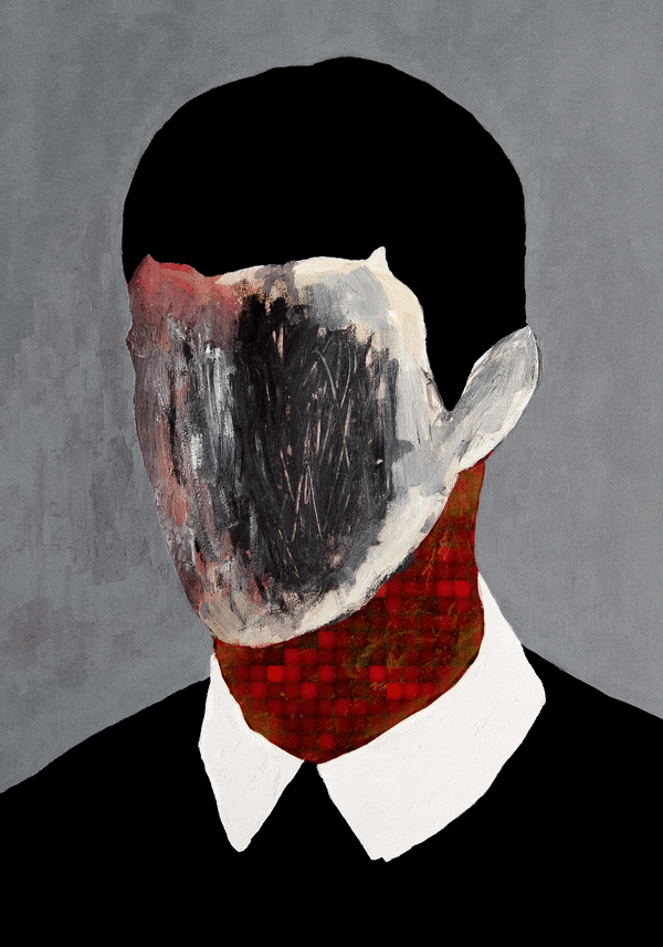 In his work, portraiture and identity are challenged by an intimate, yet anonymous depiction of the body. The use of the silhouette makes the work relatable, through which both the artist and audience can begin to channel and deconstruct, amplified by the mask-like quality of the figure’s face.