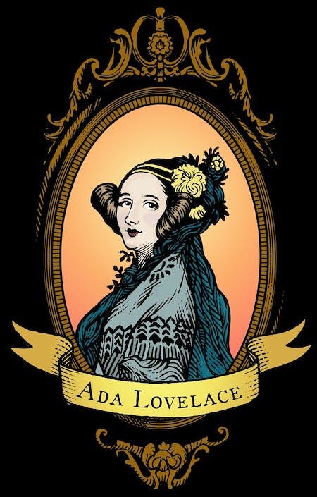 Left: “Ada Lovelace, a color woodcut-style portrait, based on the nineteenth century A. E. Chaton portrait.” by dullhunk is marked with CC BY 2.0.