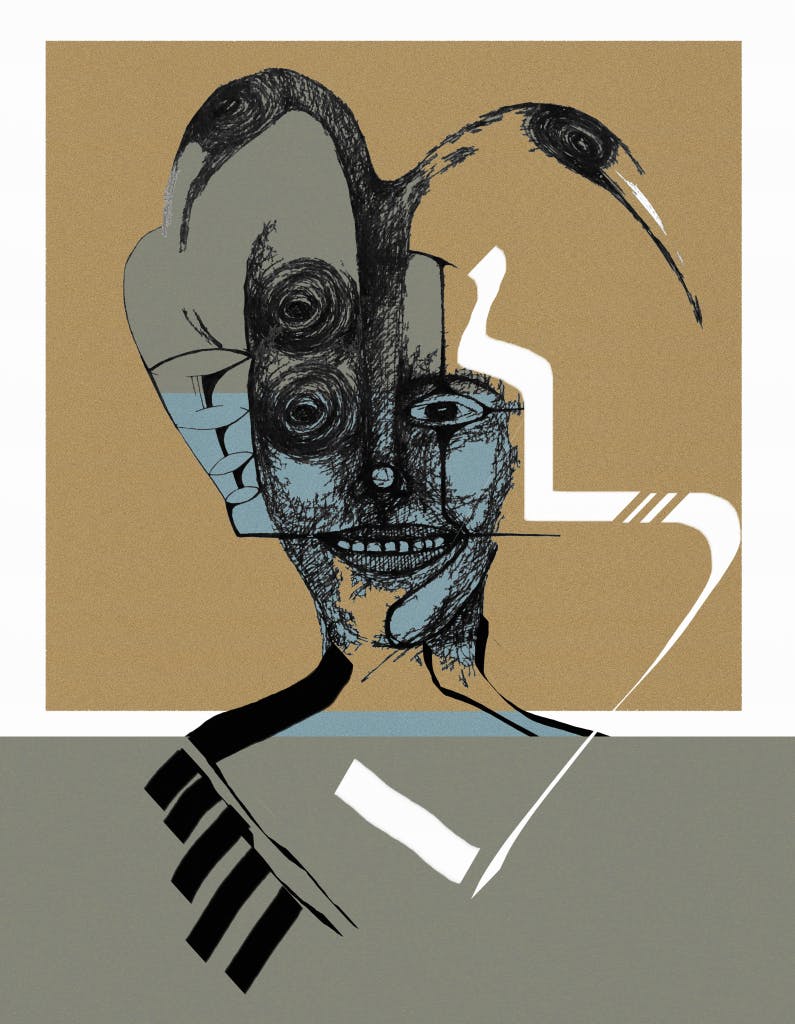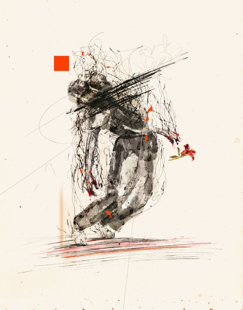 This piece is very powerful. It reminds me of Goya’s black paintings but I love how it balances an academic style of drawing with modern expressive and geometric touches.