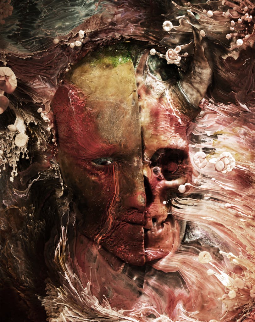 The pieces that I shoot for SuperRare though take quite a bit of planning and oftentimes, multiple attempts until I get the desired result. I will usually start with some thumbnails or concept sketches, just so I can get the image out of my head and on to paper so I can decide if it’s going to work or not. I will then start modeling the subject I plan to shoot with 3D software and then print it out with a resin 3D printer so I can have a subject to interact with the flowing pigments I shoot with.
