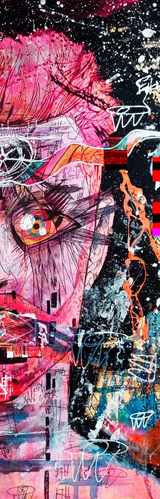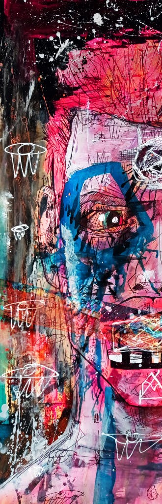 I had a mixture of religious experiences and interpersonal experiences. In my daily life I decided to make more portraits and draw faces, as each face reminds me of a metamorphosis of myself – Yusaymon. My portraits were being reborn in a chaotic abstract, a surreal but therapeutic process.