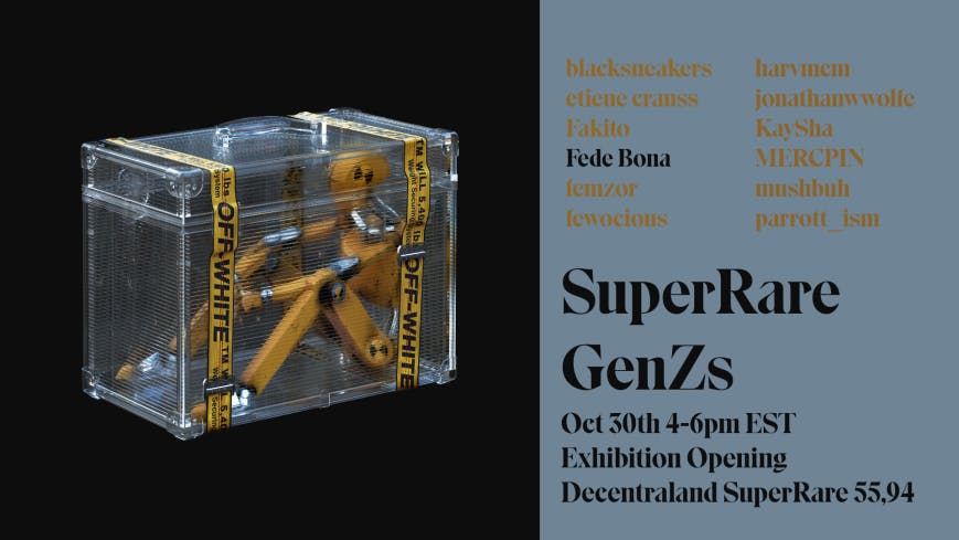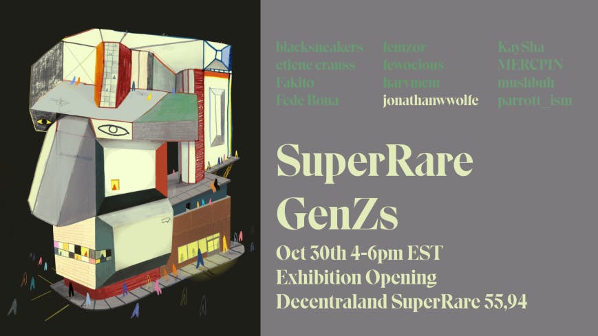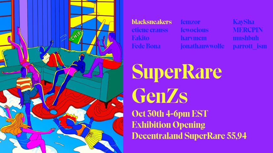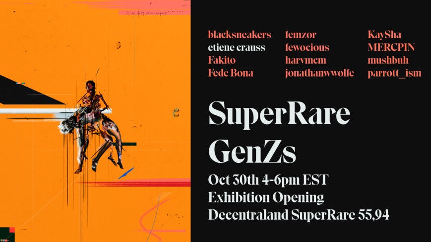 Excited to announce that our upcoming exhibition “SuperRare GenZs” will open on this Friday (Oct 30) 4-6pm EST.