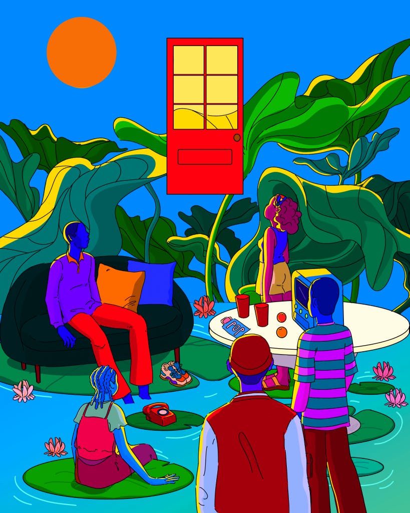 Just found out that almost all the pieces blacksneakers has tokenized on SR so far have a very bright light source (sun) in it. Some of these light sources are shown/half shown in the picture, some are shown as in reflections (a mirror, for example), while others are not in the frame, but you can tell they exist from the very bright yellow light cast on every human figure and object. It’s a very touching discovery for me. The people in her art are often faceless. Yet with these bright lights cast on people and their environments, her art always has a sense of warmth, hope, and peace in it.