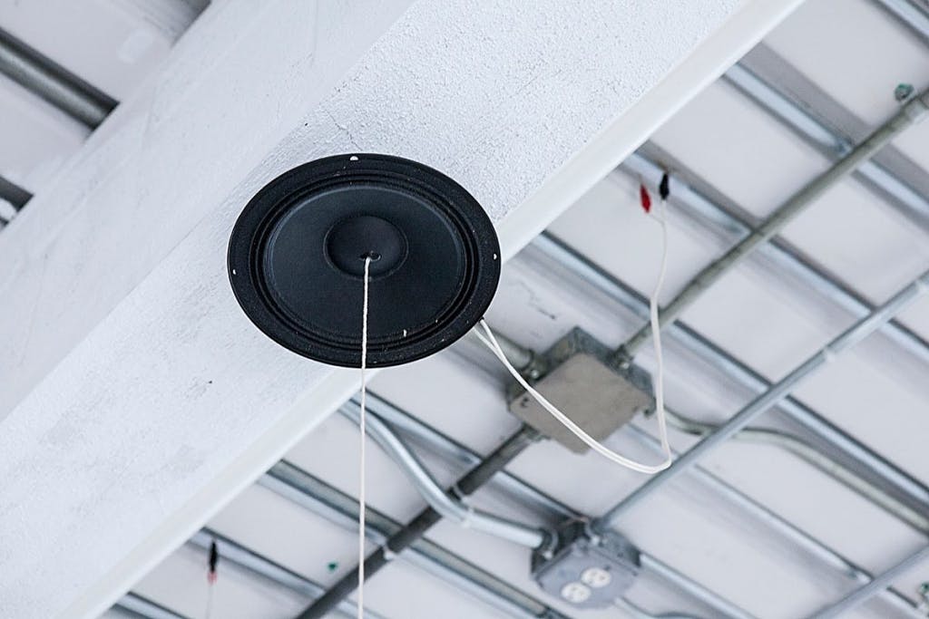 The work of Garet can take many shapes, from sound installation to sculpture to video. The sound became something to know, to make physical, to see. This is evident in works such as 30 Cycles of Flux (2012) where wires hooked to speakers create a flux of movements depending on the sound.