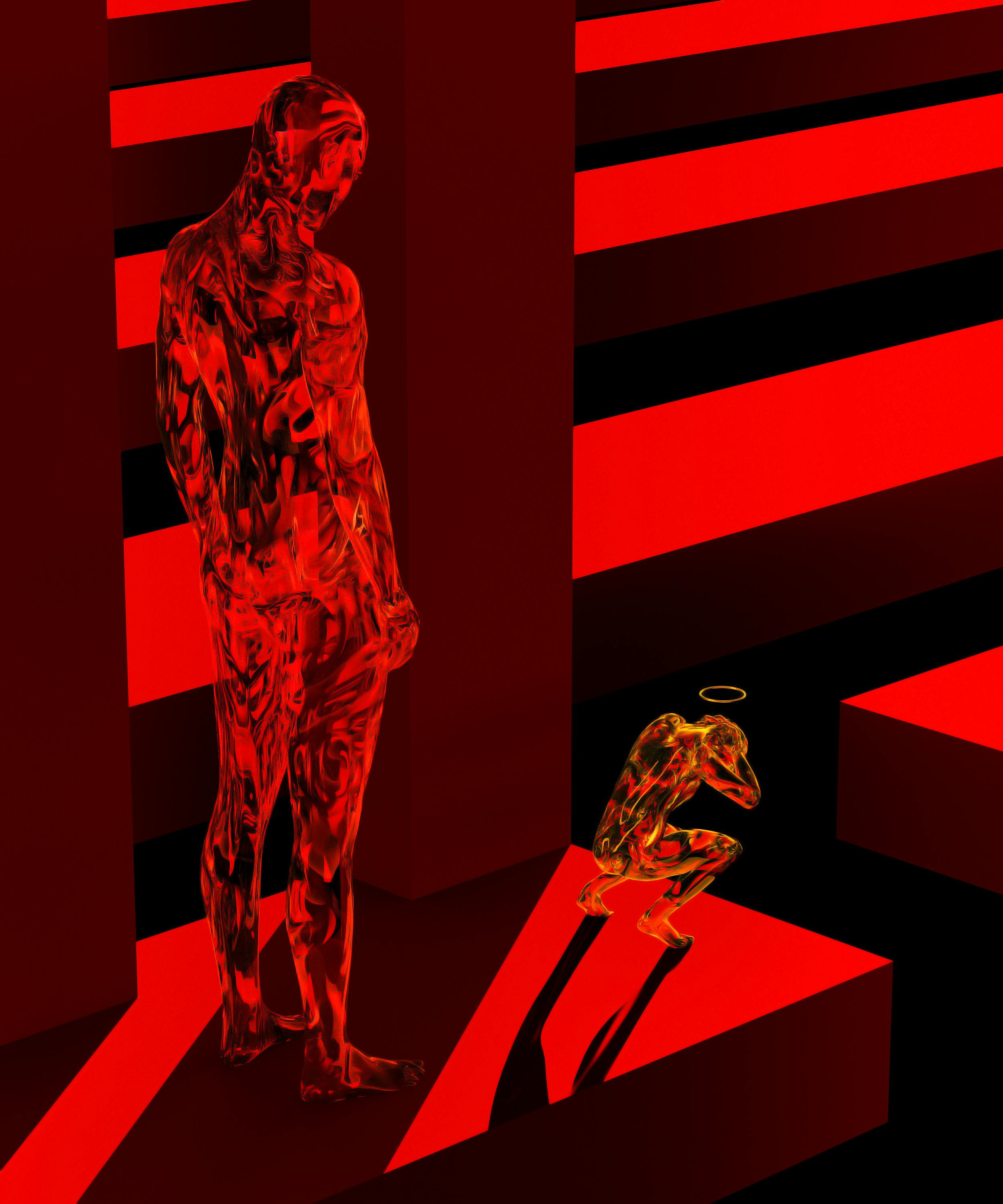 I started out making social media designs for people like streamers and youtubers, and I usually got my in touch with clients through Twitter back then. One day I saw someone re-tweet an artwork by @beeple, and I was immediately hooked on his work and couldn’t believe what this amazing artist was able to achieve in a single day, so I set a goal and started making daily pieces as well – I already had some 3D knowledge when I started and doing this helped me to grow a lot. When I was doing daily pieces, I would mainly focus on techniques instead of representing emotions or telling a story with a piece, I used it as a way to expand my technical knowledge. After around 3 years of doing only 3D work and not doing any more social media designs, I found SuperRare and it changed the course of my art completely, the second I saw that I could be valued more as an artist I got inspired and did my best to start adding emotion and storytelling to all the technical knowledge I had learnt in the previous years.