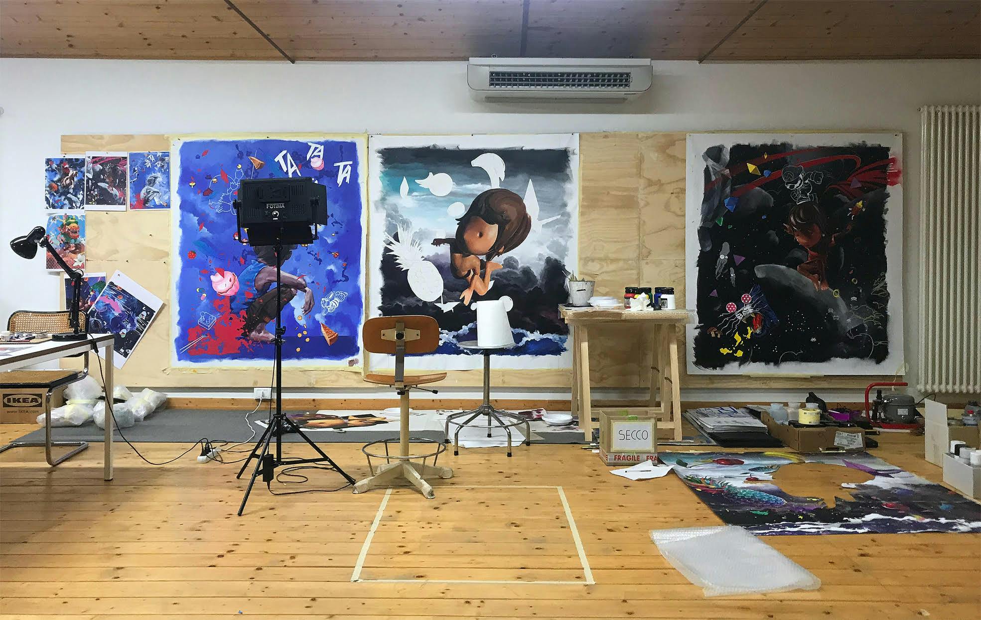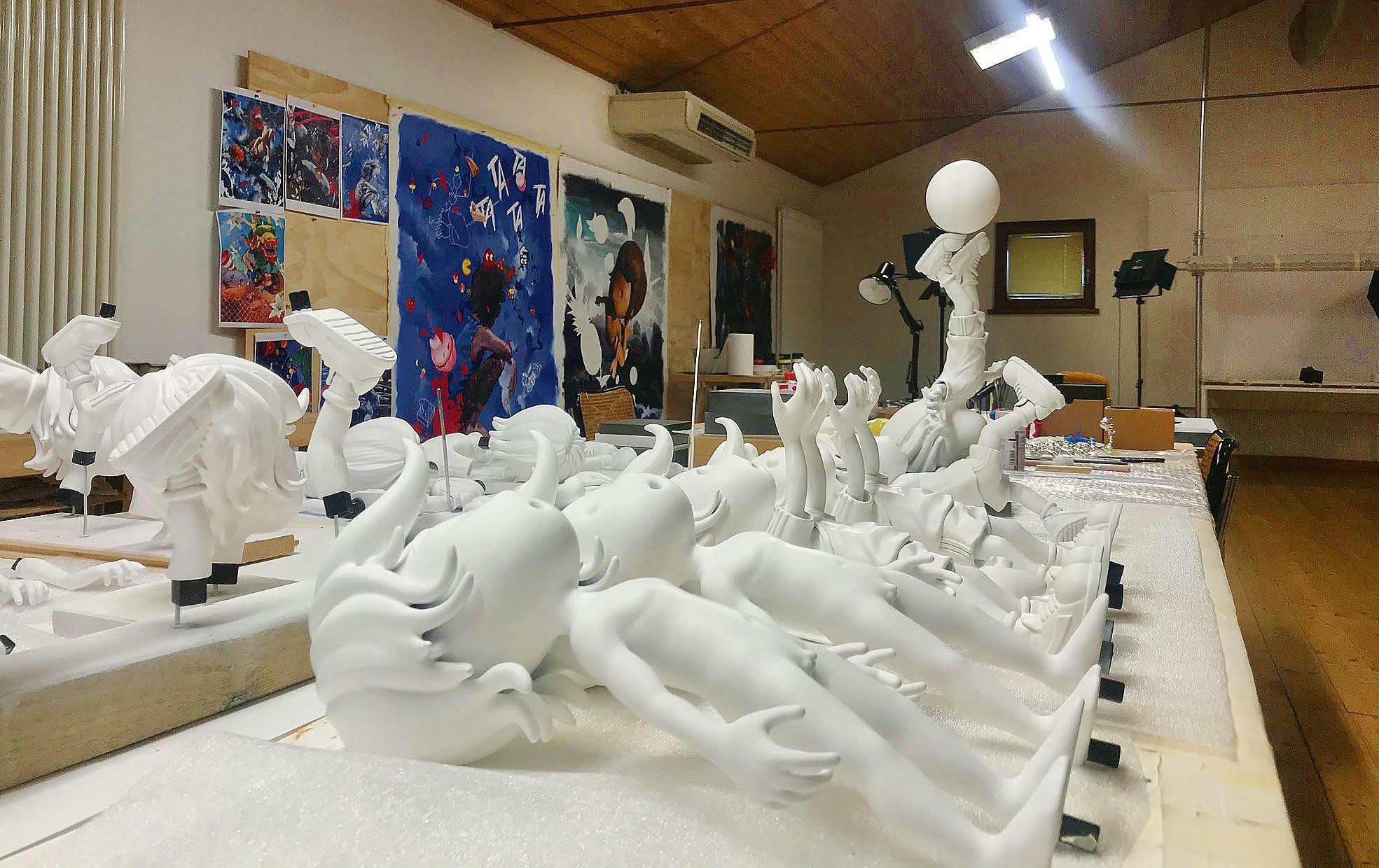 Giovanni Motta’s studio resembles a technological laboratory because to realize his sculptures, the artist uses tools sophisticated, as chisels and 3D printers. This does not mean, however, that the entire process is automated. All the other things, the craftsmanship of the modeling in sculpture, as well as the acrimonious technique of the miniature (and of serigraphy) in the field of painting are the traditional ones. His is a deeply humanistic research, in which the fusion of art and technique leads to amazing results, but of which, fatally, or perhaps fortunately, the observer cannot notice. Something of similar happens in the works of Takashi Murakami or Jeff Koons, in which iconic impact overwhelms, and indeed obnubila, the technical details of the production. In essence, the final form cancels the process and frees the object from the ideative, conceptual and structural assumptions that preside over the his creation, to let the amazement and wonder of the images, key elements of his way of understanding art.