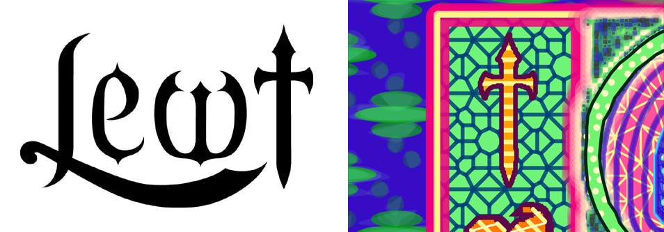 The swords flanking “Visionary Founder” is a reference to the “T” in the Lewt.com logo. Lewt was an early pre-blockchain company Jesse founded, which acted as a broker for virtual items and currencies in online games. Because Lewt.com now redirects to Kraken, I thought a more subtle reference was in order. Our NFT community with its concern for securing ownership and trading of virtual items for the metaverse should appreciate how early Lewt was to what we’re all doing together today.