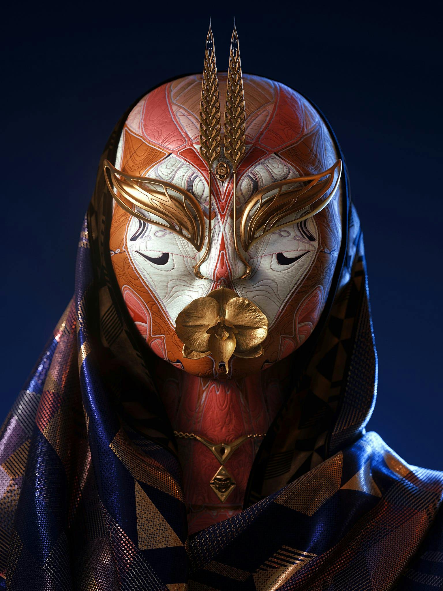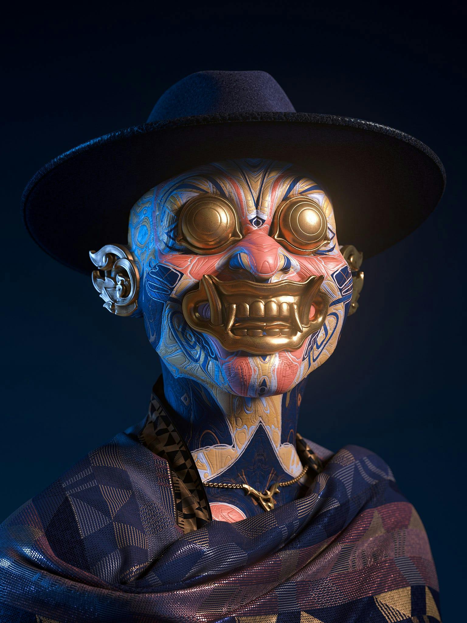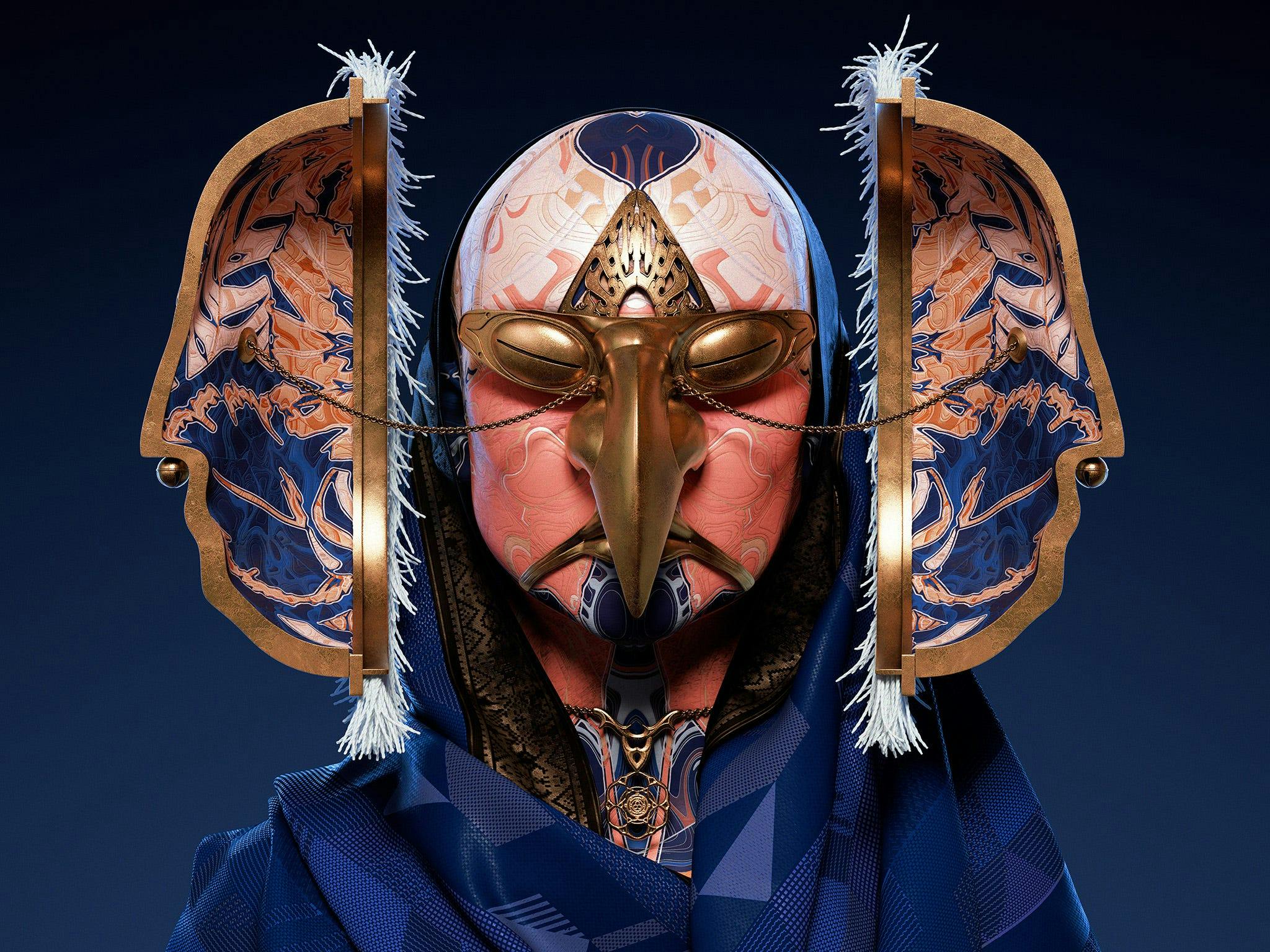With globalization, there’s a certain homogenization of culture. Remote tribes and cultures are assimilating into modern society, cultures are appropriating, re-appropriating, mixing and influencing each other. In this series, I tried to imagine a post-human tribe that embraces this mosaic of aesthetics. I had to come up with something that looks strangely familiar with influences from past cultures, but also a bit alien and futuristic at the same time. Playing with that anachronism is fun for me, and I think this can be an interesting way to explore futuristic aesthetics.